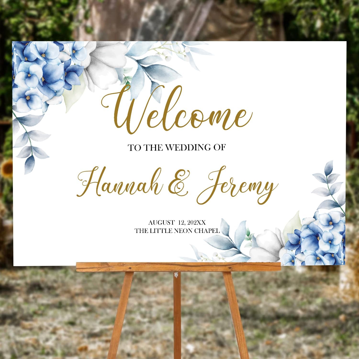 Dusty Blue Wedding Welcome Sign, Editable Floral Template, Printable Ceremony Signage, Elegant Reception Board, Minimalist Blue Wedding Decor