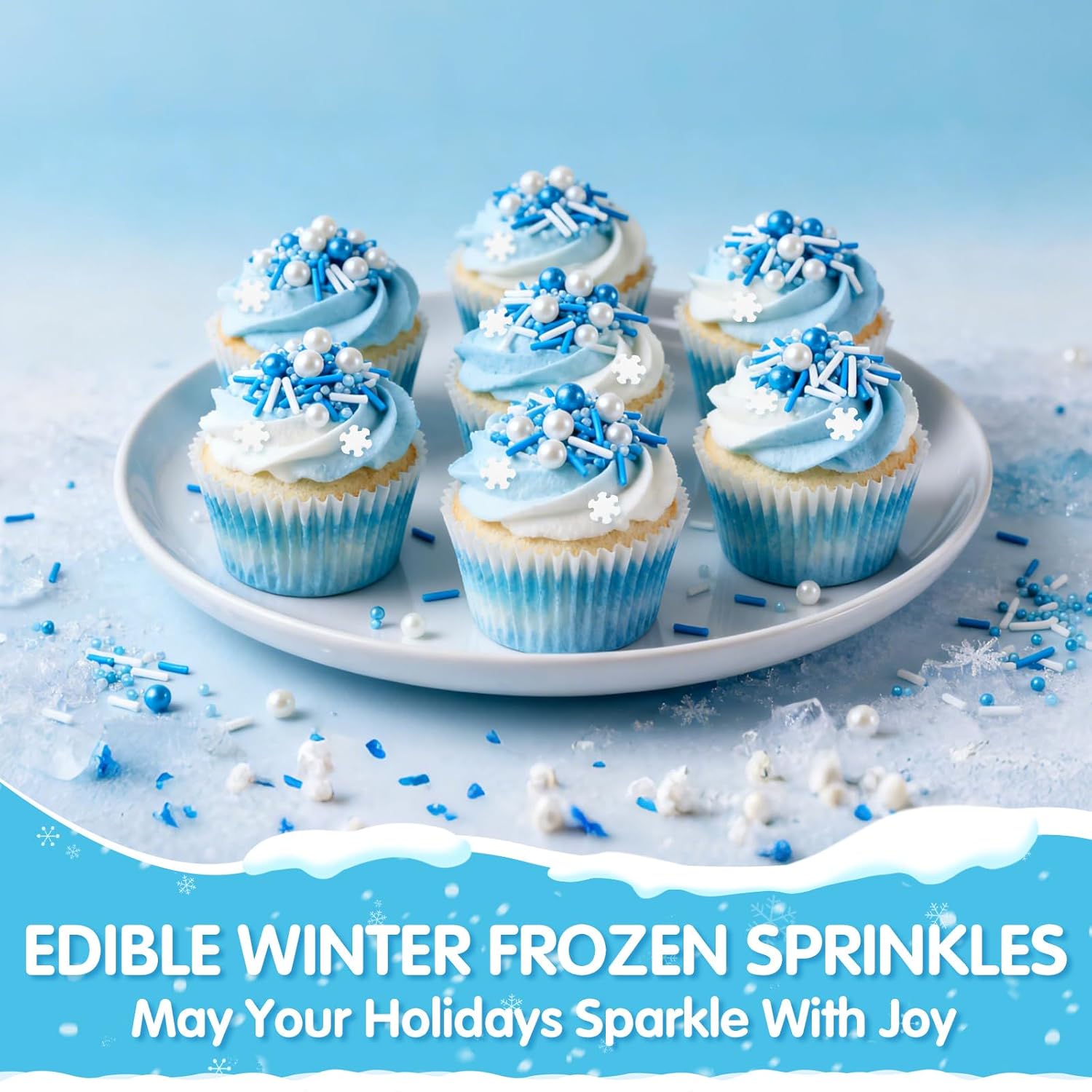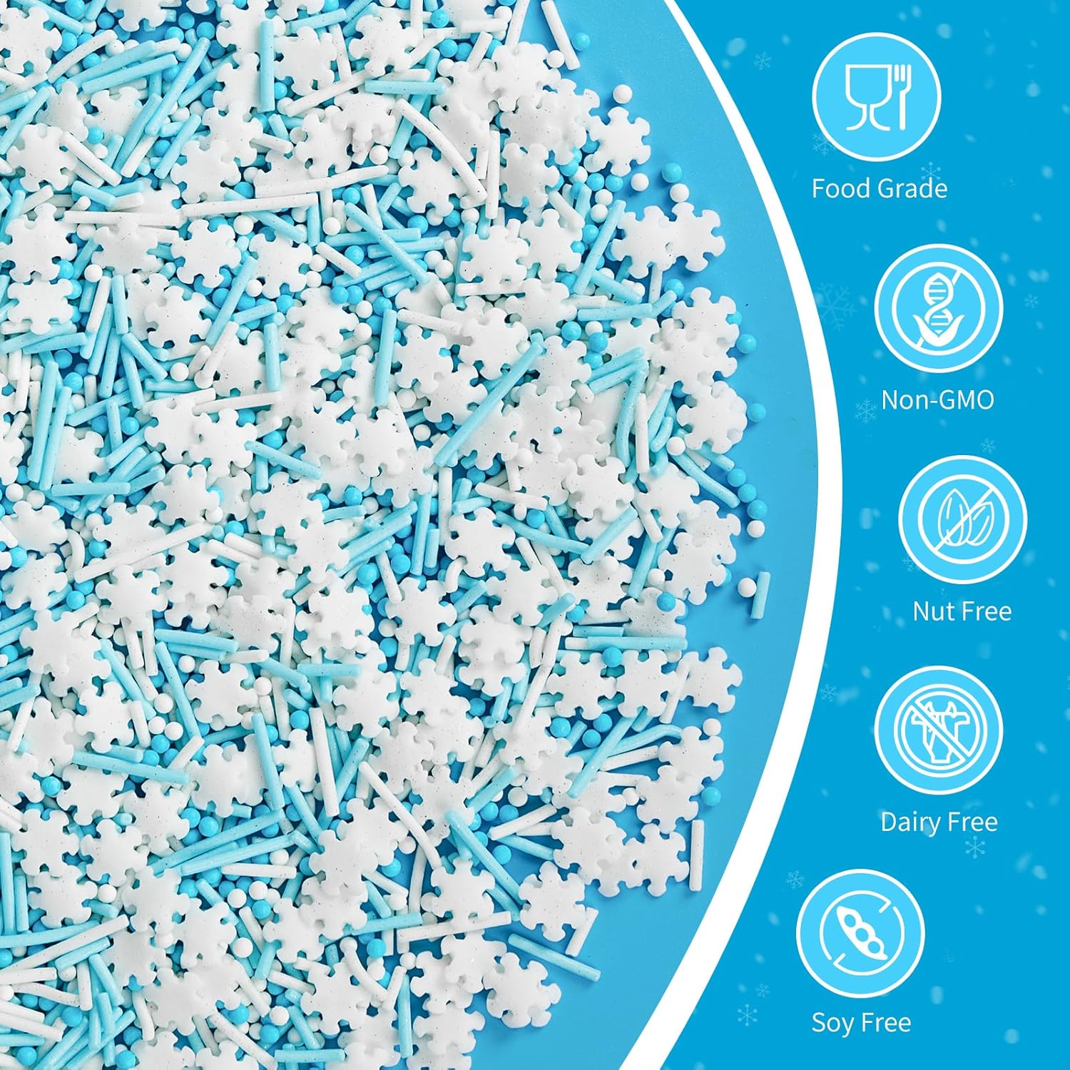 Edible White Snowflake Sprinkles,Blue White Nonpareils Pearls Jimmies Mix Sugar Sprinkle,100g,Snow Block Candy for Cake Decorating,Holiday Cake Decorations,Dessert,Cookies,Christmas Winter Baking Decorating