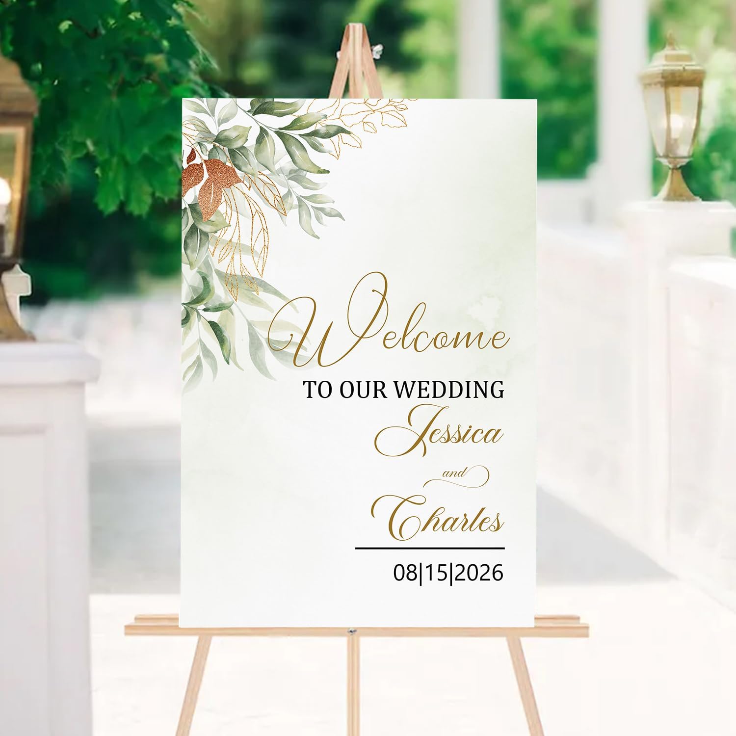Eucalyptus Wedding Welcome Sign Template, Greenery and Gold Printable Sign for Reception, Custom Wedding Board