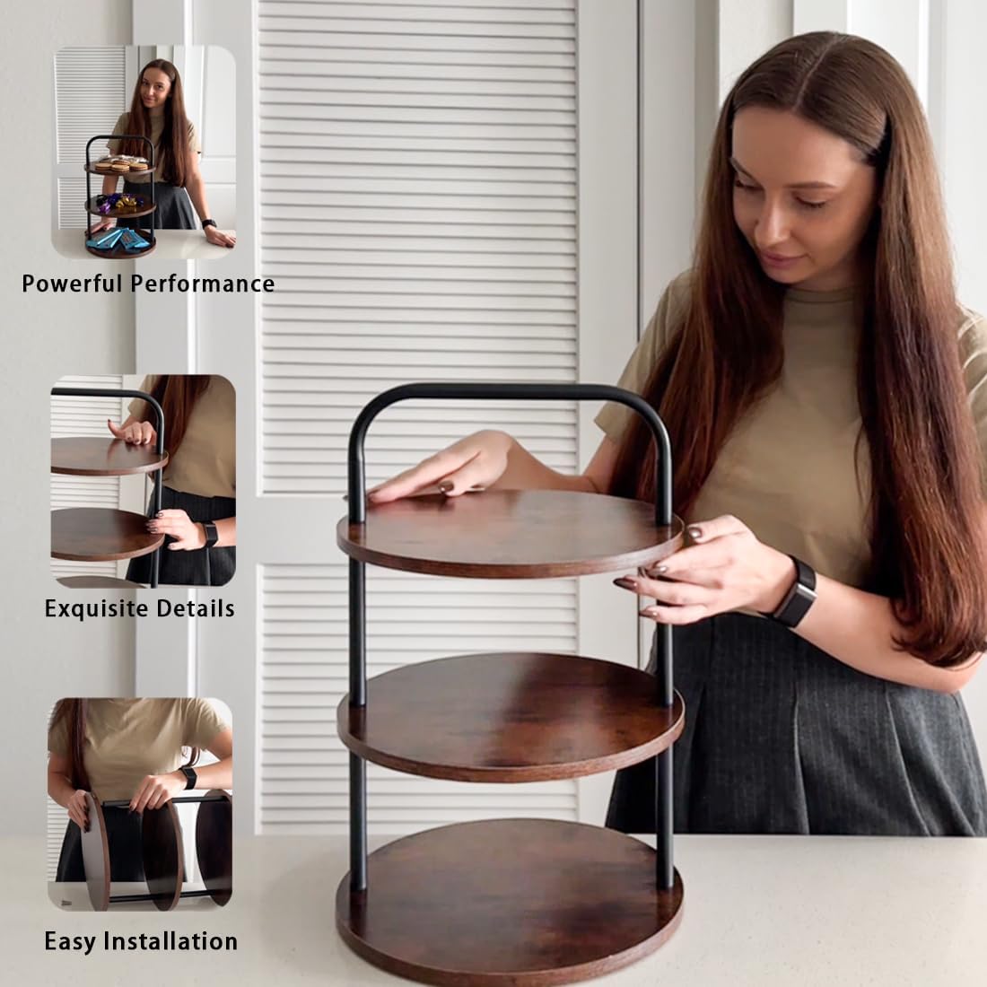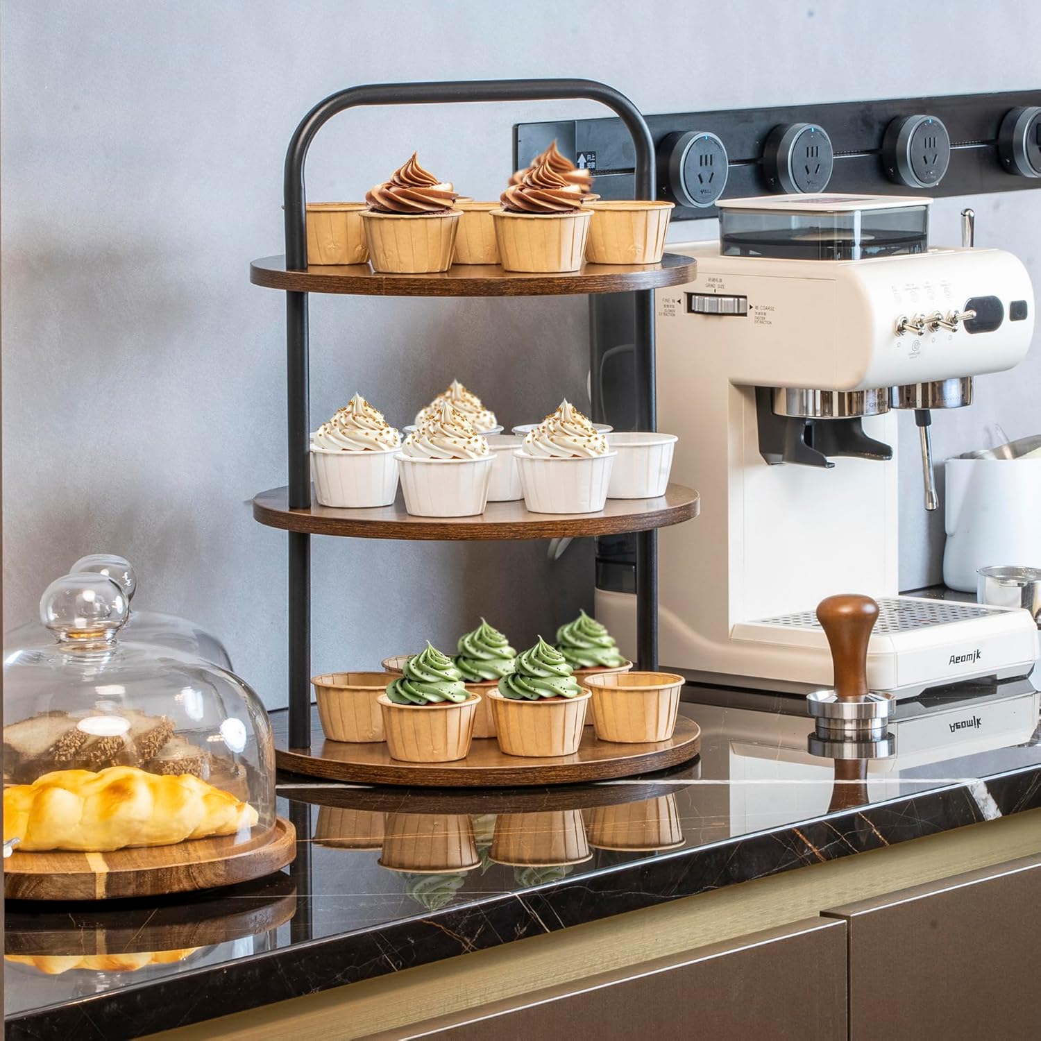 • 【Superior Warp-Resistant Trays】High-density fiberboard trays resist deformation better than natural wood; Sturdy powder-coated metal stand locks tiers securely, ensuring stability even with 50+ cupcakes; Rust-resistant finish for long-term use.