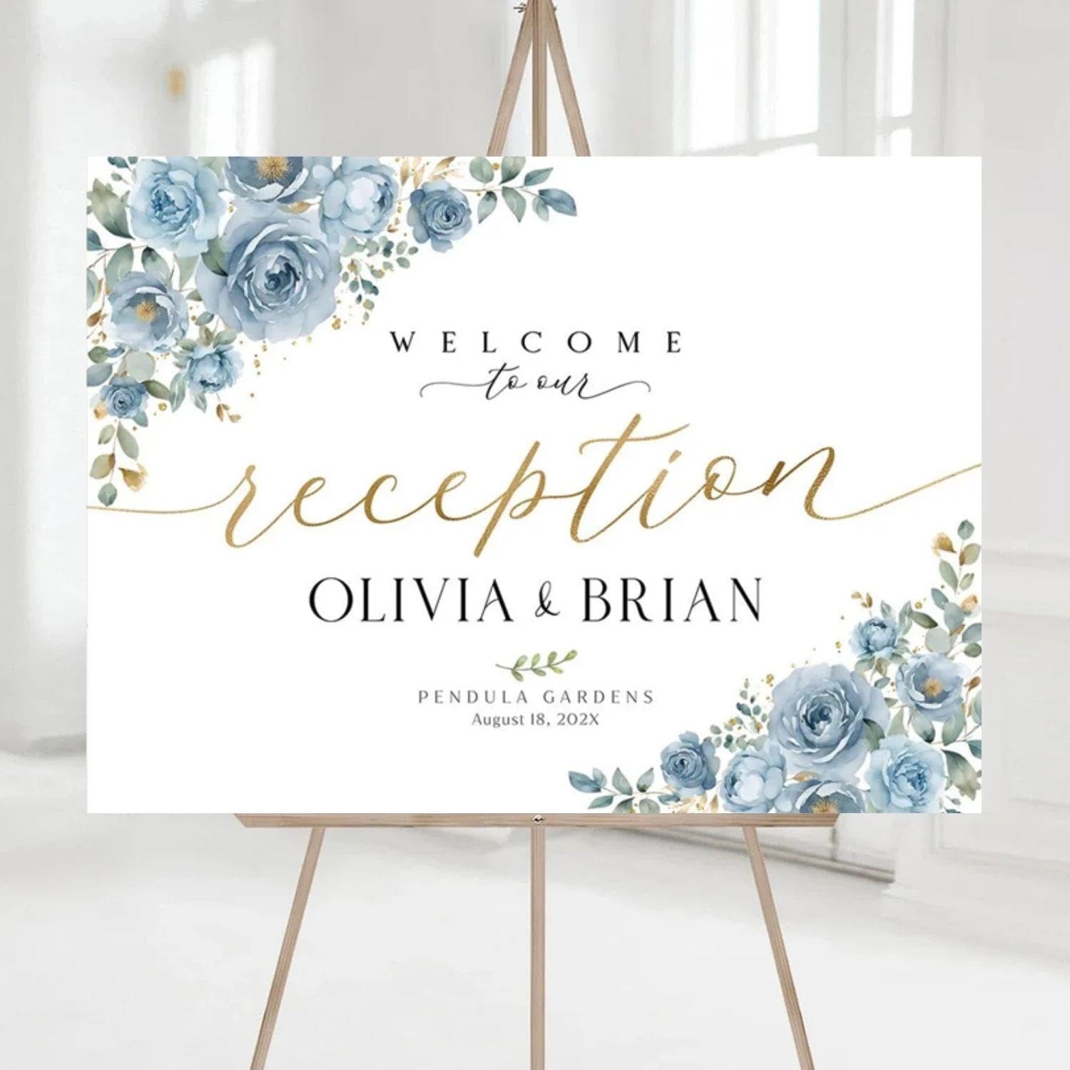 Welcome Wedding Signs, Modern Dusty Blue Wedding Sign Decorations Signage 12" X 18" (Small), 27" (Medium), 36" (Large), Plastic, Modern, Pole Mount, Weather