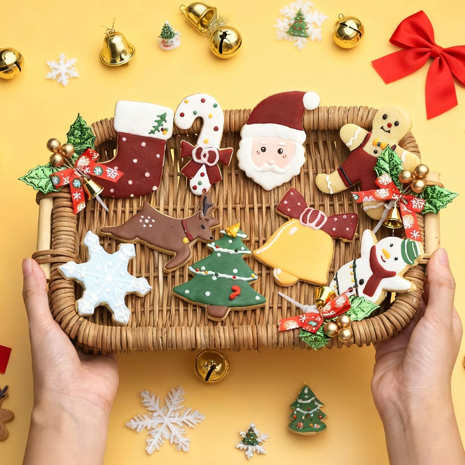 • 🎄 【Christmas Baking Cutter with Infinite Creativity】This 9-piece set of cookie cutters is more than just a cookie-making tool! Easily create cookies, fondant decorations, and chocolate shapes. You can also use it to slice sandwiches, create cheese platters, and cut fruit tarts!