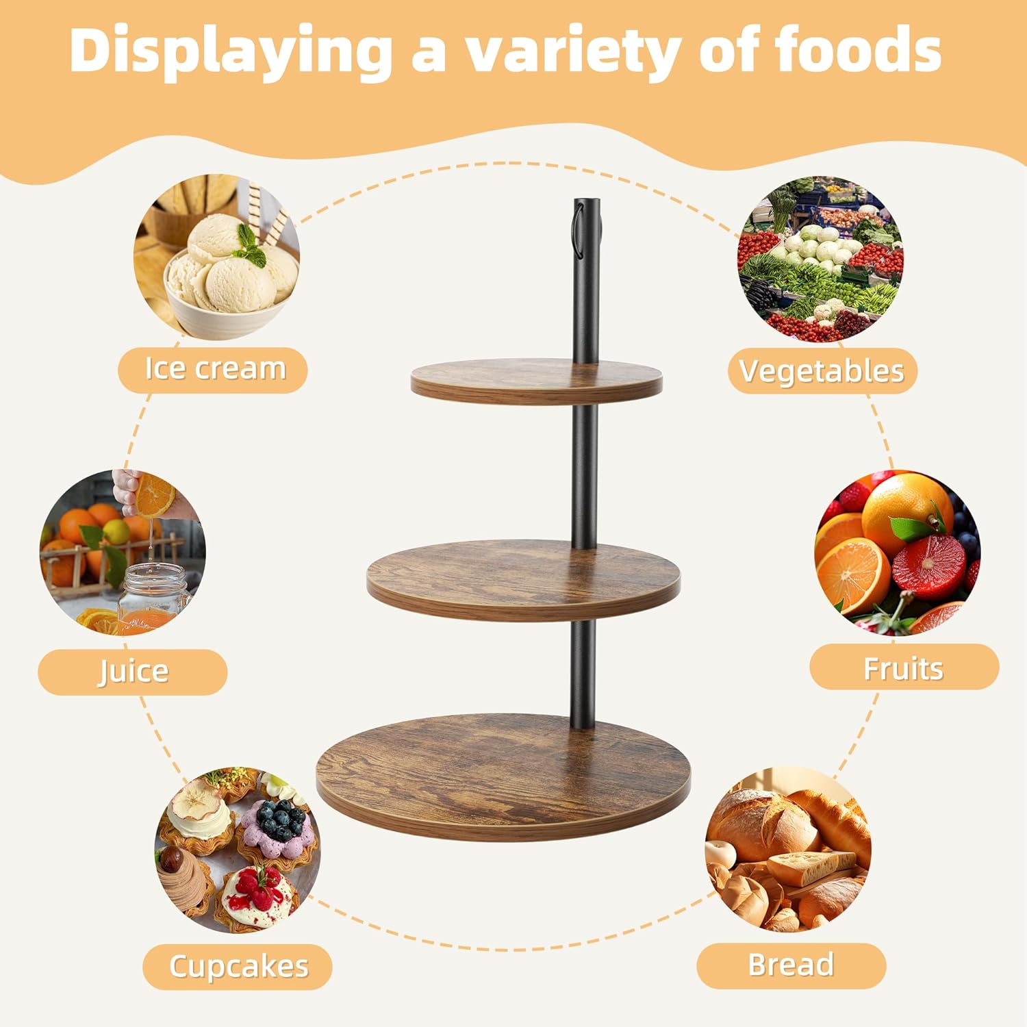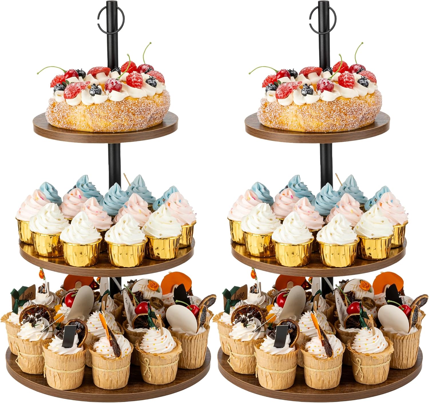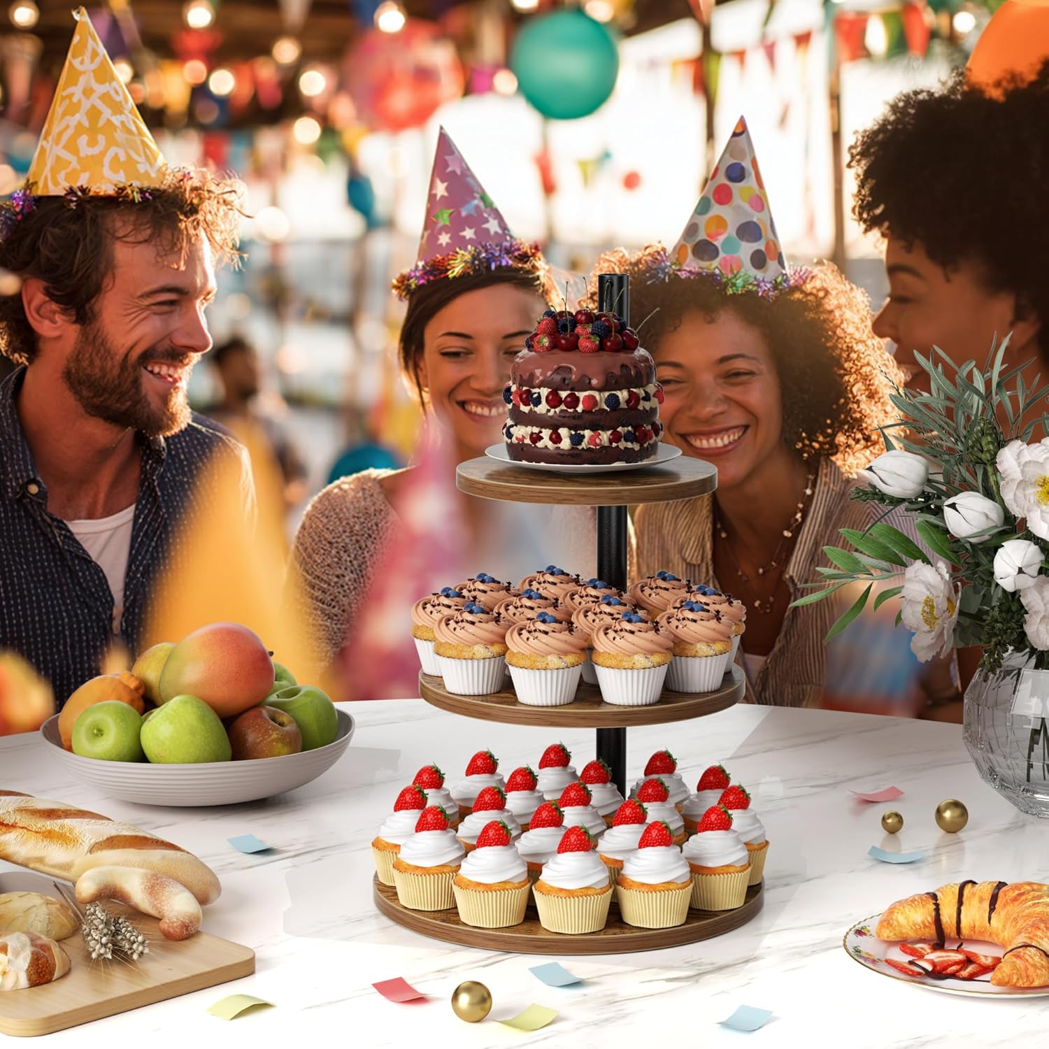 • 【Sturdy Wood & Metal Cupcake Tower Stand】Dessert Tiered Tray Stand features 0.47" thick MDF wood and a heavy-duty metal frame that supports up to 22 lbs. Anti-slip feet keep the cupcake tier stand steady on any surface, indoors or outdoors. A true rustic cake stand that combines charm with strength for repeated use across seasons