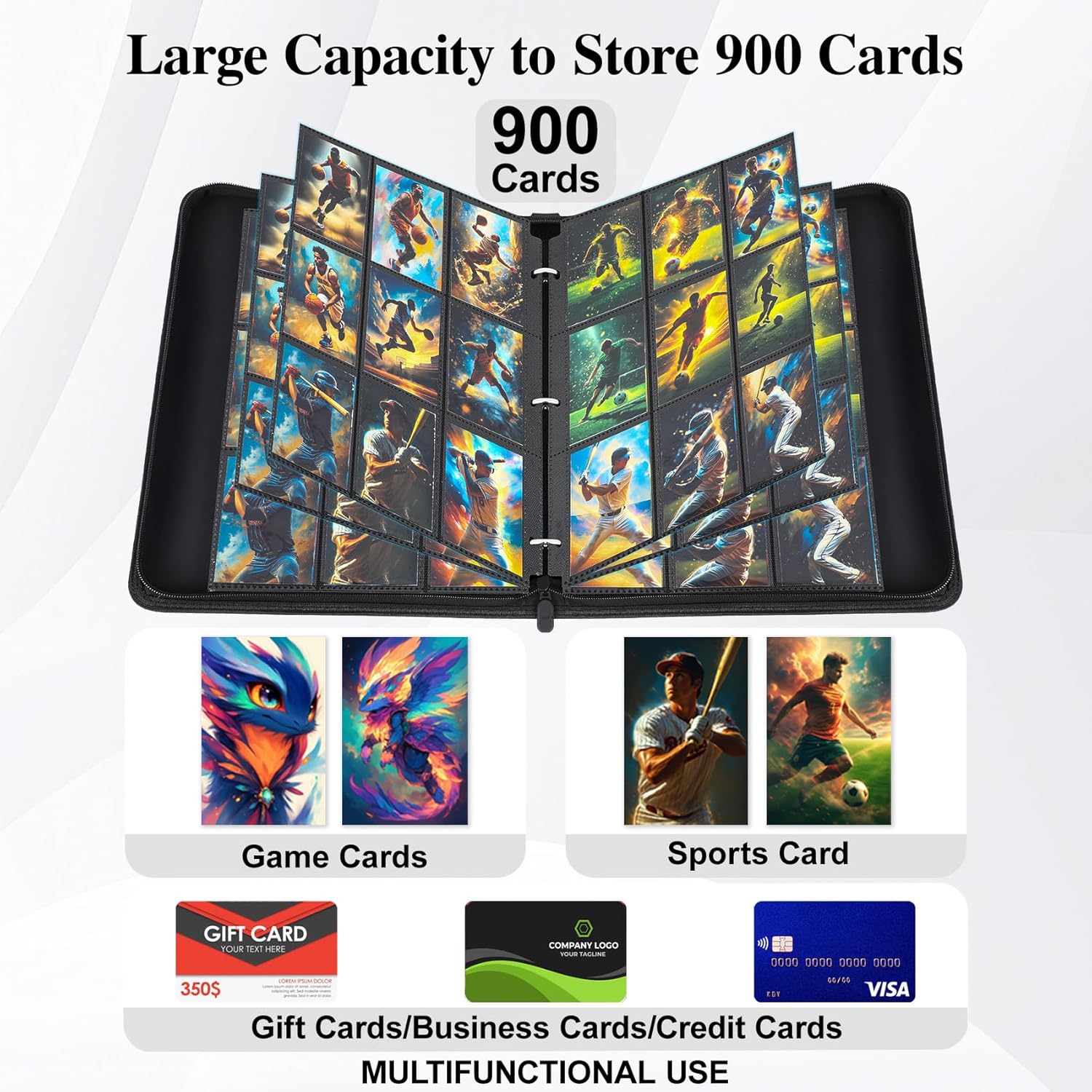 • Large Capacity Trading Card Binder: The card binder has detachable double-sided pages, with 4 pocket card binders (holding 400 cards), 9 pocket card binders (holding 900 cards), and 16 pocket card binders (holding 1024 cards). 4 or 9 pocket binder lets you easily add or subtract pages (not for 16 pocket), providing flexible organization for a growing collection.