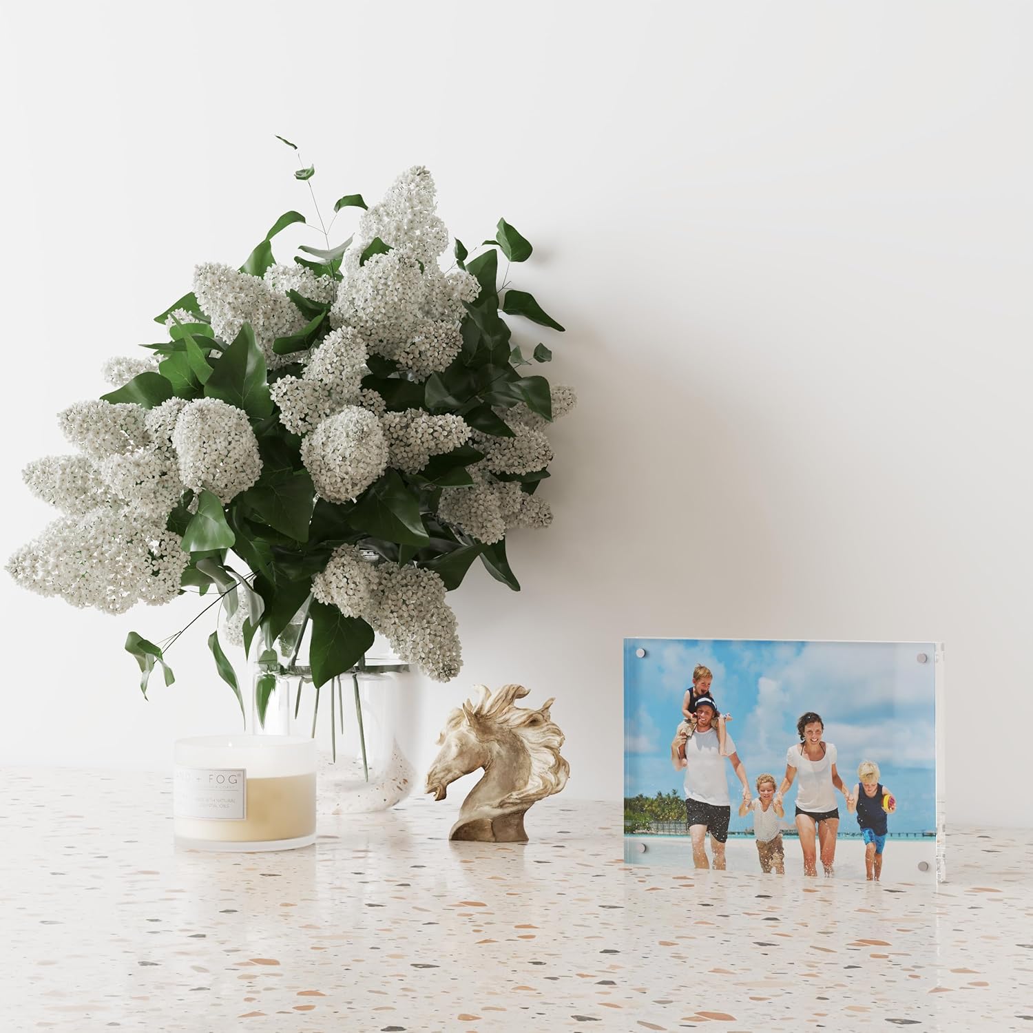 • Sleek Modern Design & Premium Material - Crafted with frameless ultra-clear acrylic (class A casting panel), this frame boasts 95% light transmission for crystal-clear displays. Its UV-resistant properties protect photos from fading under sunlight or fluorescent lighting