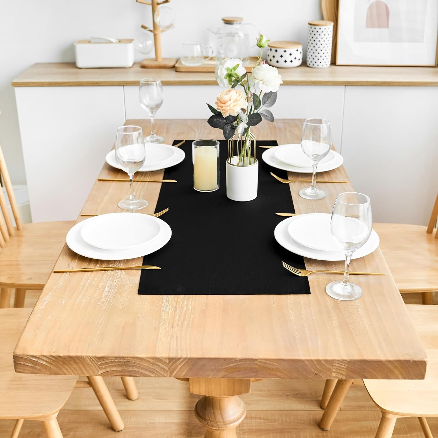 • Size Guide: Each package contains 2 PCS table runners. Each short black table runner is 12X24 inches, recommended for small tables, such as end tables, coffee tables, tea tables, beside tables, nightstands and so on. You can refer to the size table to select a solid dresser runner of the right length. There may be a slight deviation due to manual tailoring