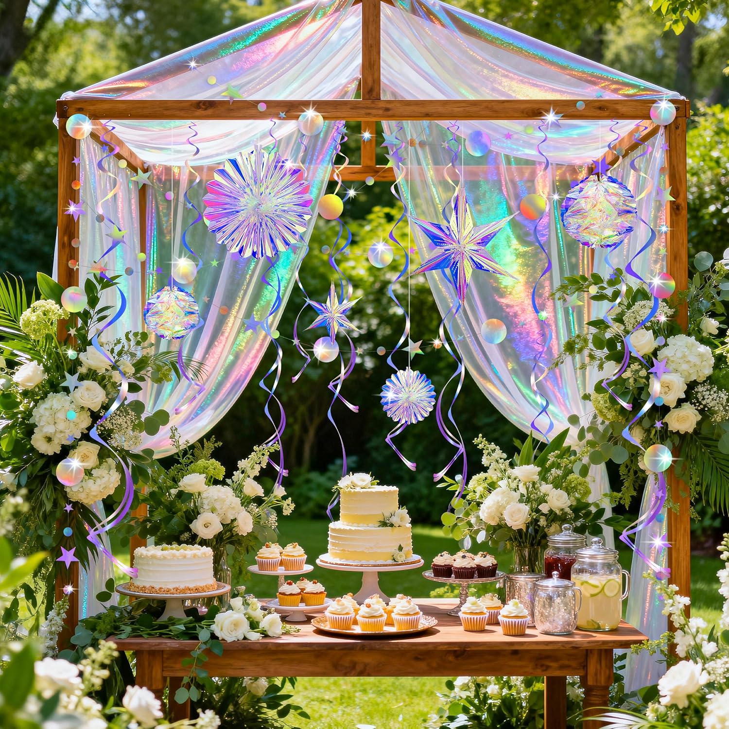 BTSD-home 29 Pcs Iridescent Party Decorations with Hanging Honeycomb Ball Decorative Paper Fan Snowflake Hexagonal Star Garlands Ribbons Birthday Wedding Graduation Bachelorette Disco Party Supplies