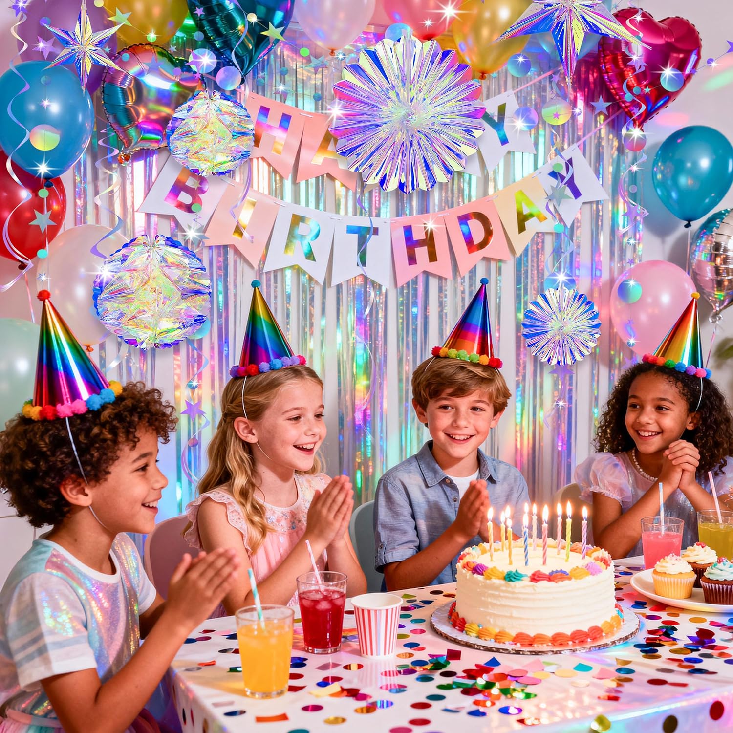 • Easy to set up: The iridescent birthday decorations can be installed without the help of any tools, allowing you to easily create a stunning party scene in minutes. The iridescent party supplies are reusable and come with velcro and string for quick installation, saving time and effort.