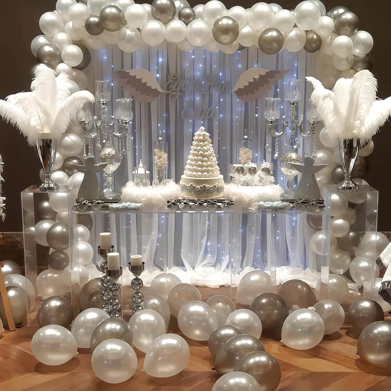 • Multiple creative uses: Our pearl white and silver balloon kit is perfectly color coordinated, making it easy to create balloon arches, balloon garlands, balloon bouquets, balloon columns, table centerpieces, or photo booth backdrops. Great for decorating baby shower entrances, winter wonderland themed party walls, cake tables, and Christmas party backgrounds. TIPS: Use 2 or more packs for a fuller display!