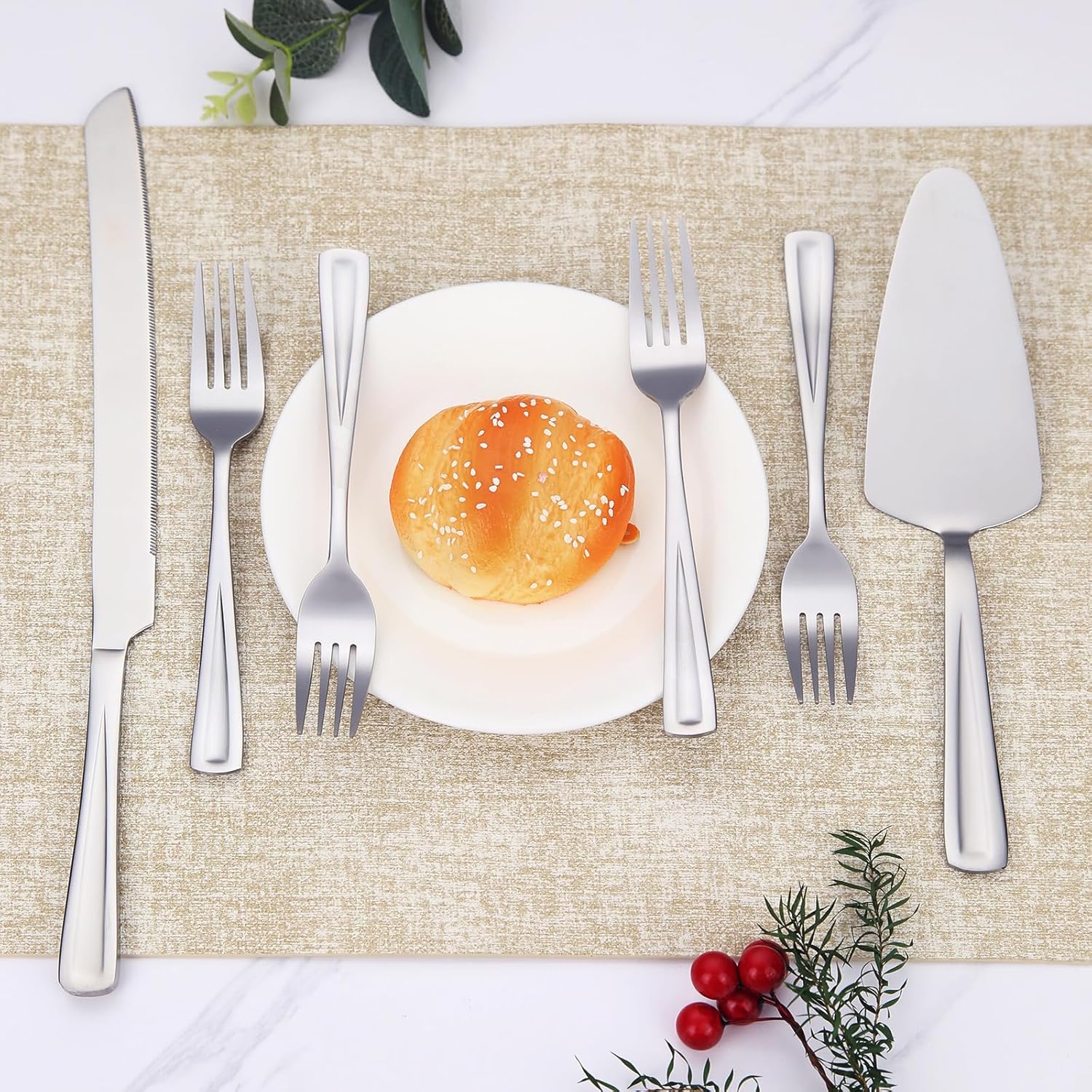 • All-in-One Serving Solution: Includes 1 pc cake knife, 1 pc cake pie server spatula and 4 pcs salad forks – perfectly sized to slice, lift, and serve cakes/pies while keeping hands clean.