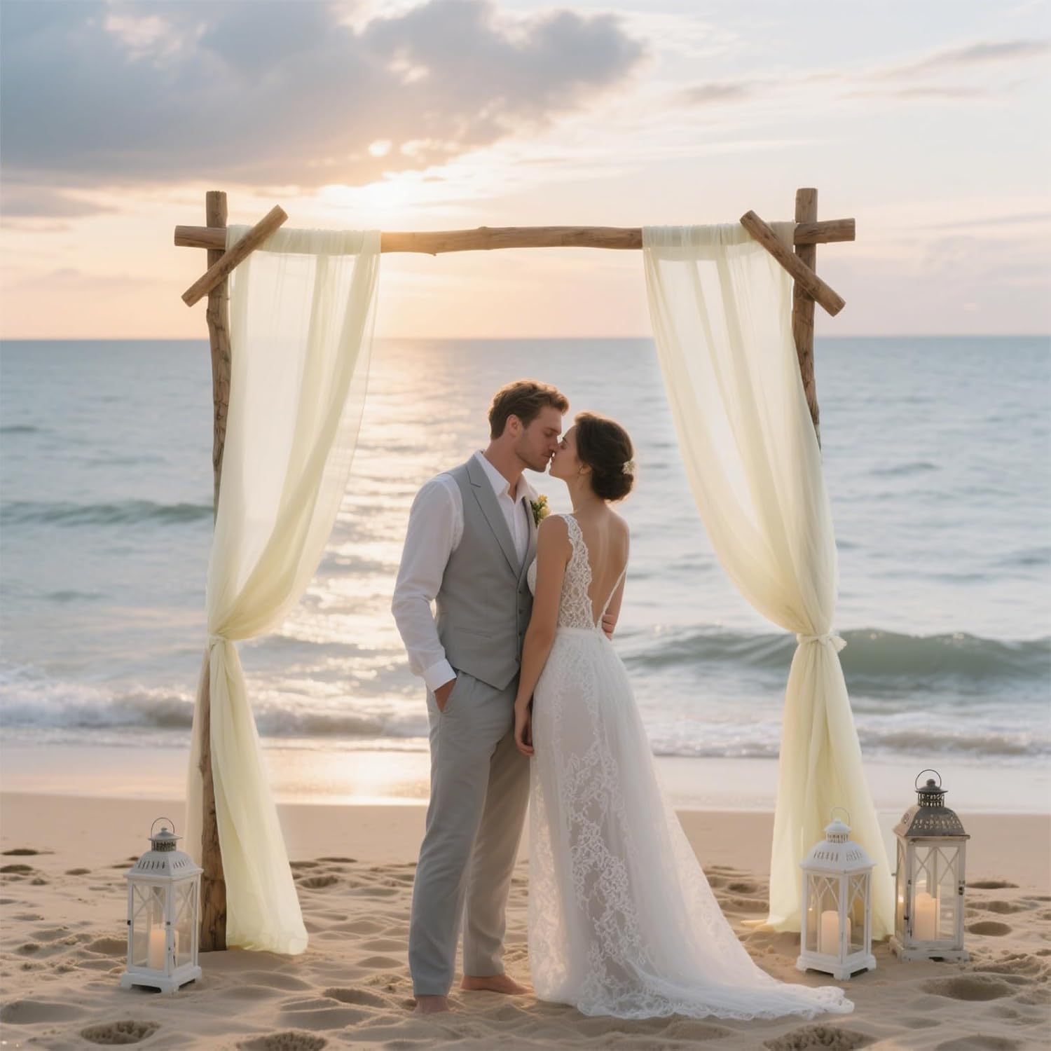 VOK Wedding Arch Draping Fabric Chiffon Curtains, 29in x 18Ft Sheer Chiffon Outdoor Curtain for Wedding Ceremony Birthday Party Decoration (Light Yellow,4 Panel)