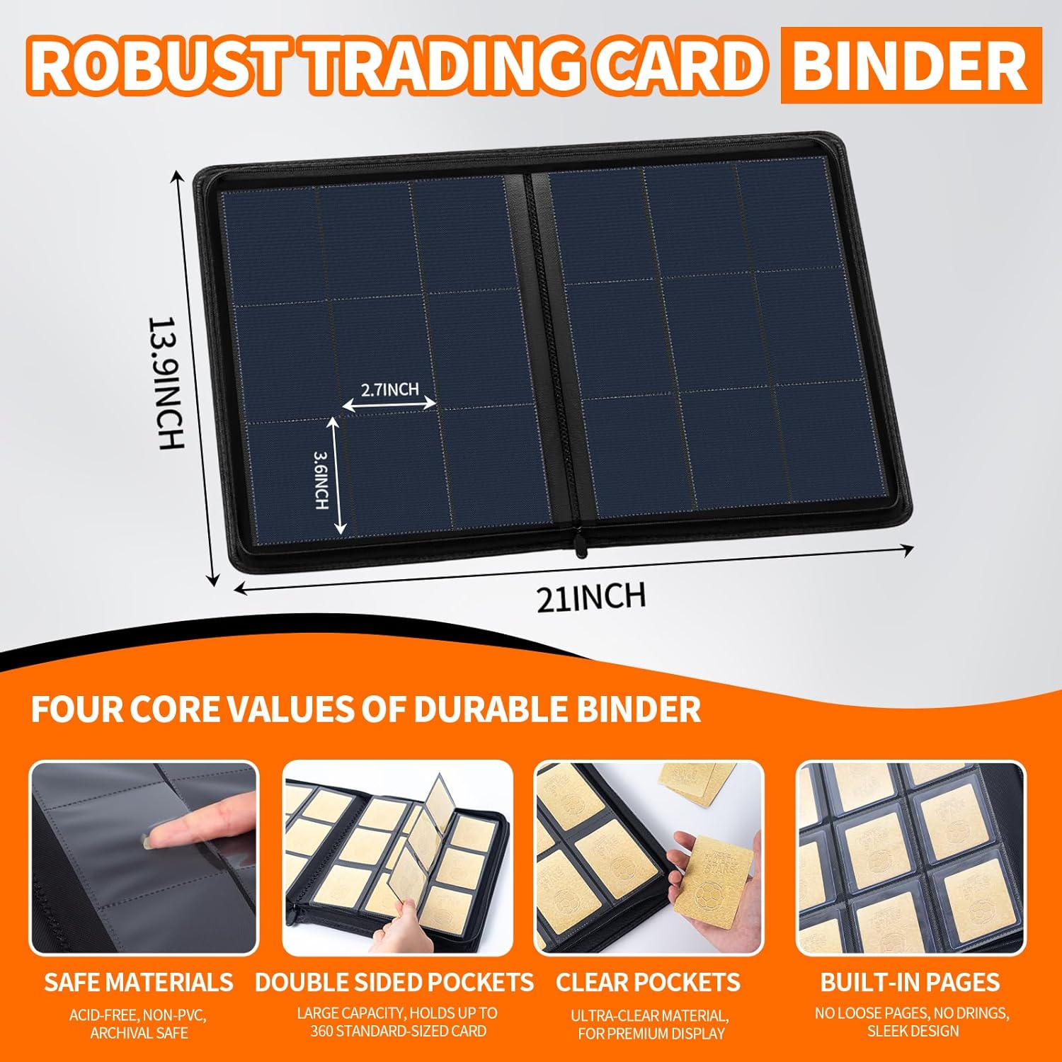 • 【360-Card Capacity】Finally a home for all your cards! This Card Collection Binder (35x26.7x3.8cm) comes with 20 pages (9 slots per page)—say goodbye to lost treasures and messy stacks.