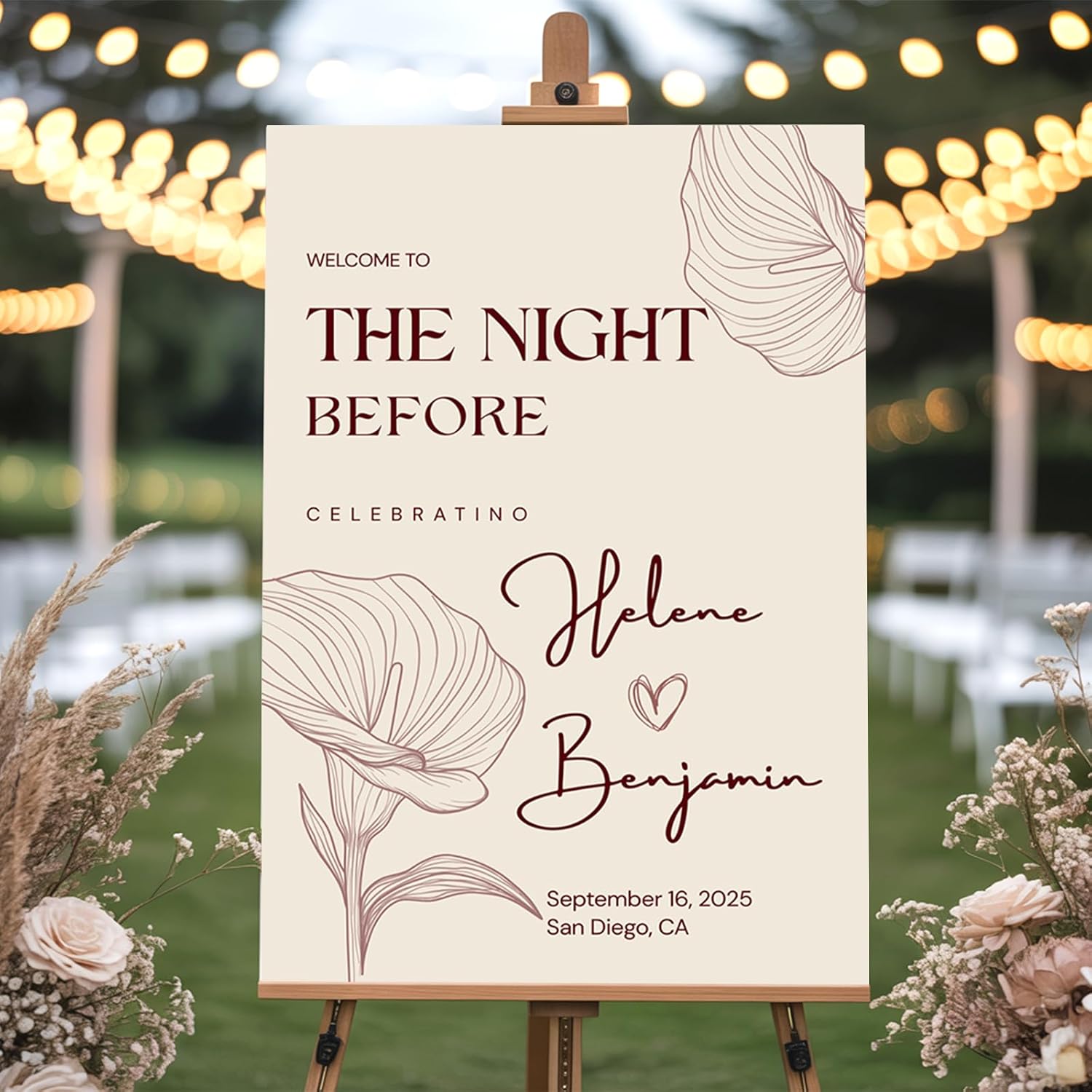 • Easy to Display: Designed to fit perfectly on sign holders or easels, making setup simple for both indoor and outdoor events, and ensuring your guests are greeted in style.