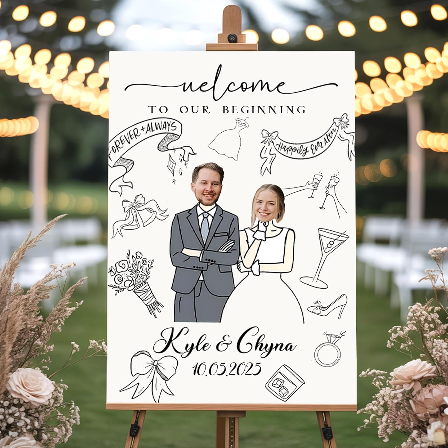 Custom Wedding Plaque for Welcome Sign, Personalized Welcome to our Weddings Poster with Portrait Bride & Groom, Customized Funny Wedding Sign for Bridal Party, Engagement