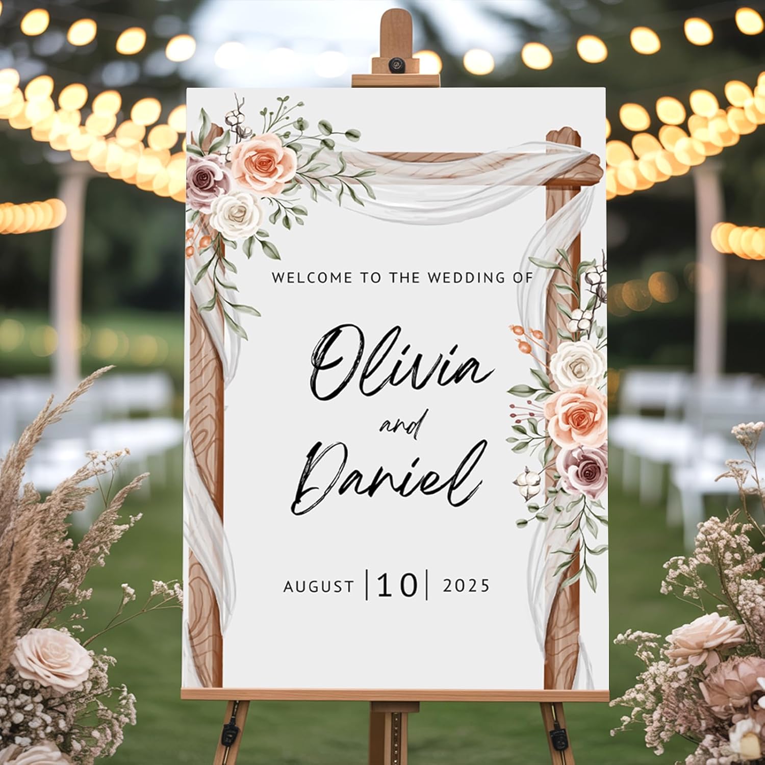 • Easy to Display: Designed to fit perfectly on sign holders or easels, making setup simple for both indoor and outdoor events, and ensuring your guests are greeted in style.