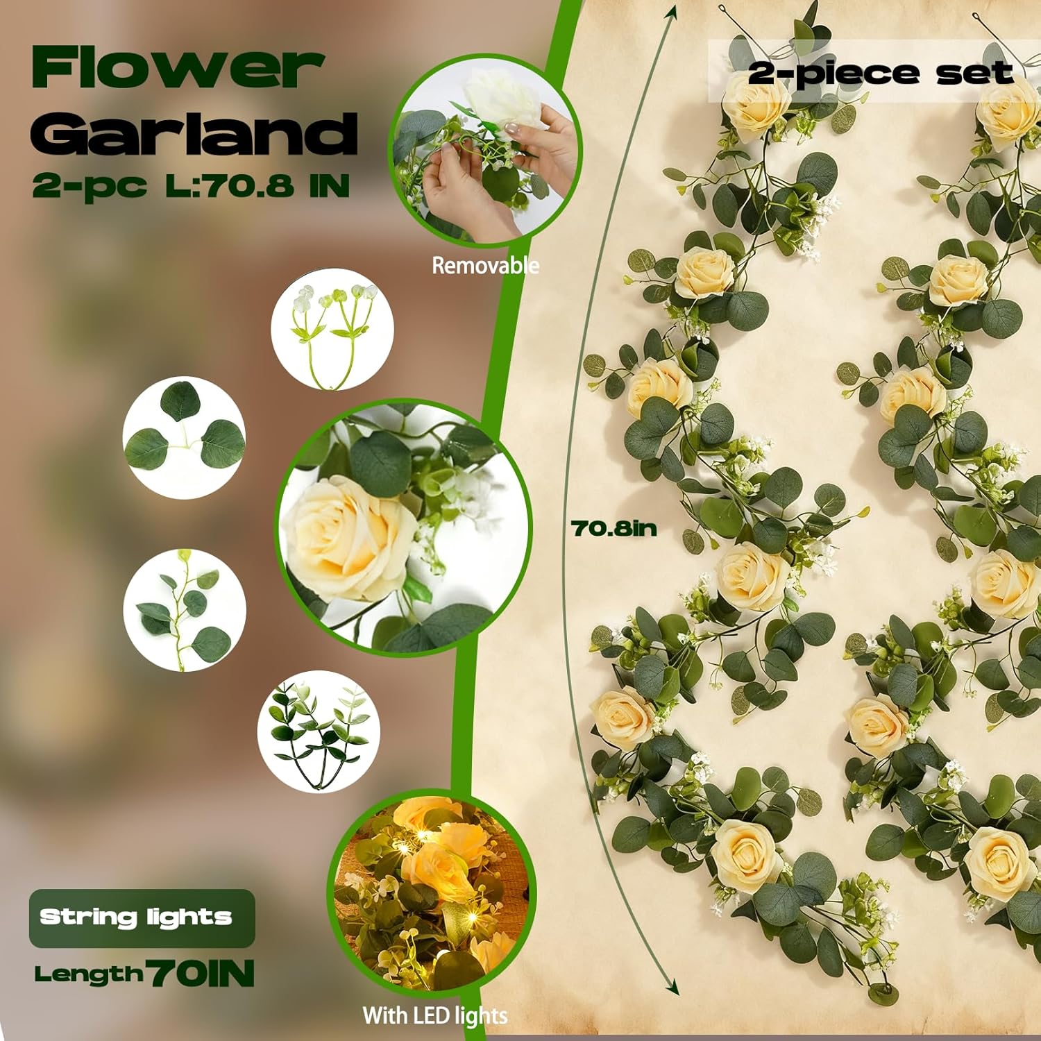 • Versatile Applications: With their gorgeous colors and romantic style, our floral garlands are suitable for any season or occasion. This combination is ideal for large spaces such as wedding arches, rooms, backdrops, mantels, and more. Look forward to creating magical floral arrangements with our rose garlands.