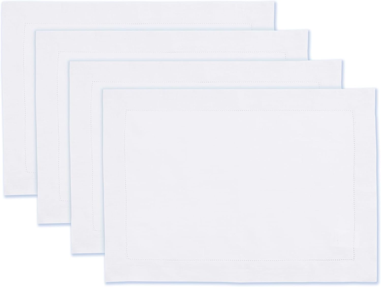 100% Pure Linen White Placemats 14 x 19 Inch - Hemstitch Christmas Placemats Set of 4 - Cloth Fabric Placemats for Thanksgiving, Winter, New Year - Elara