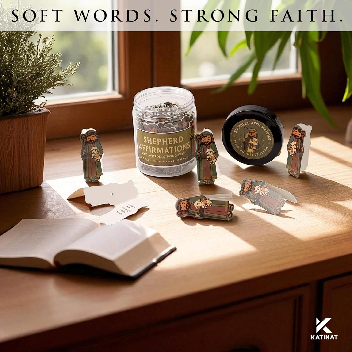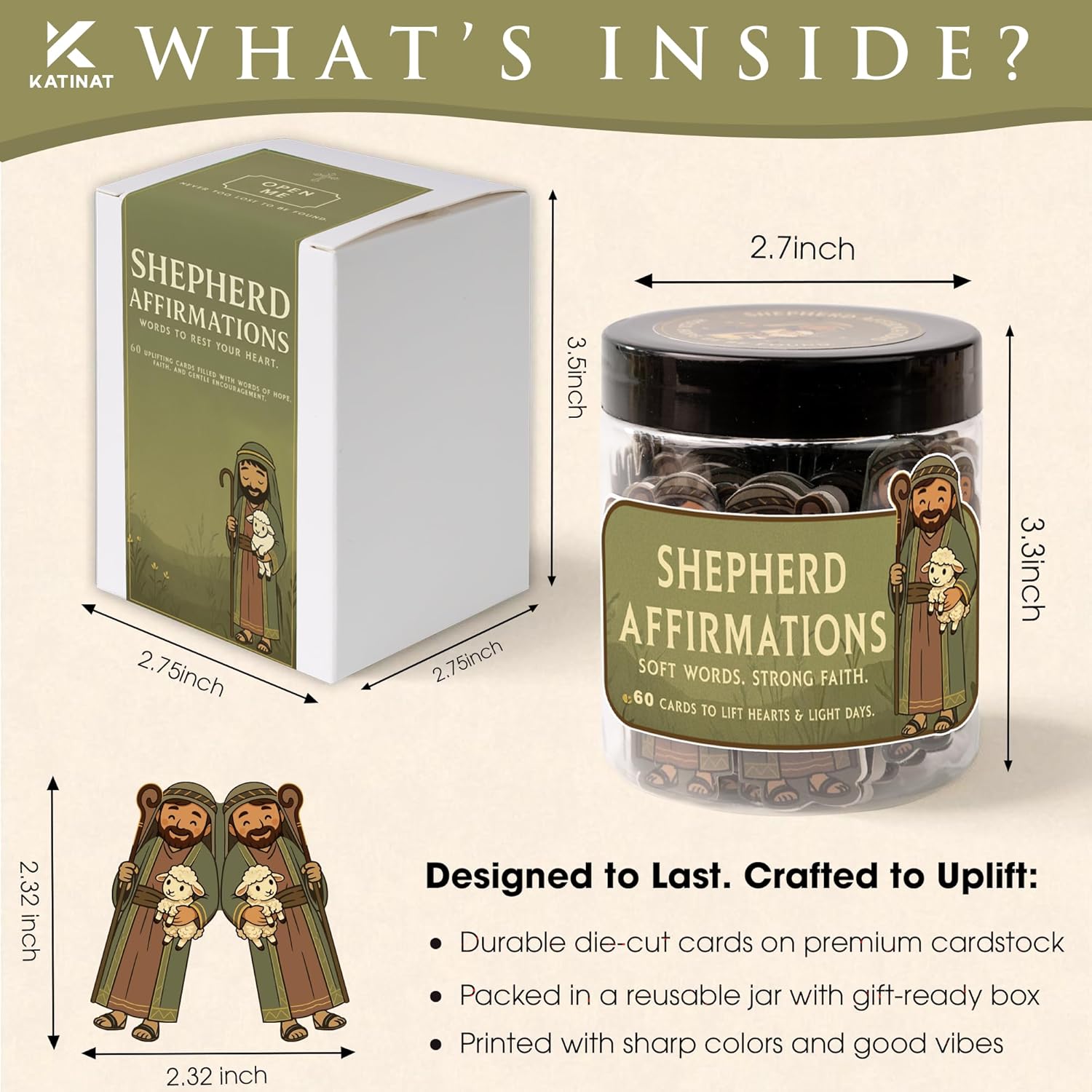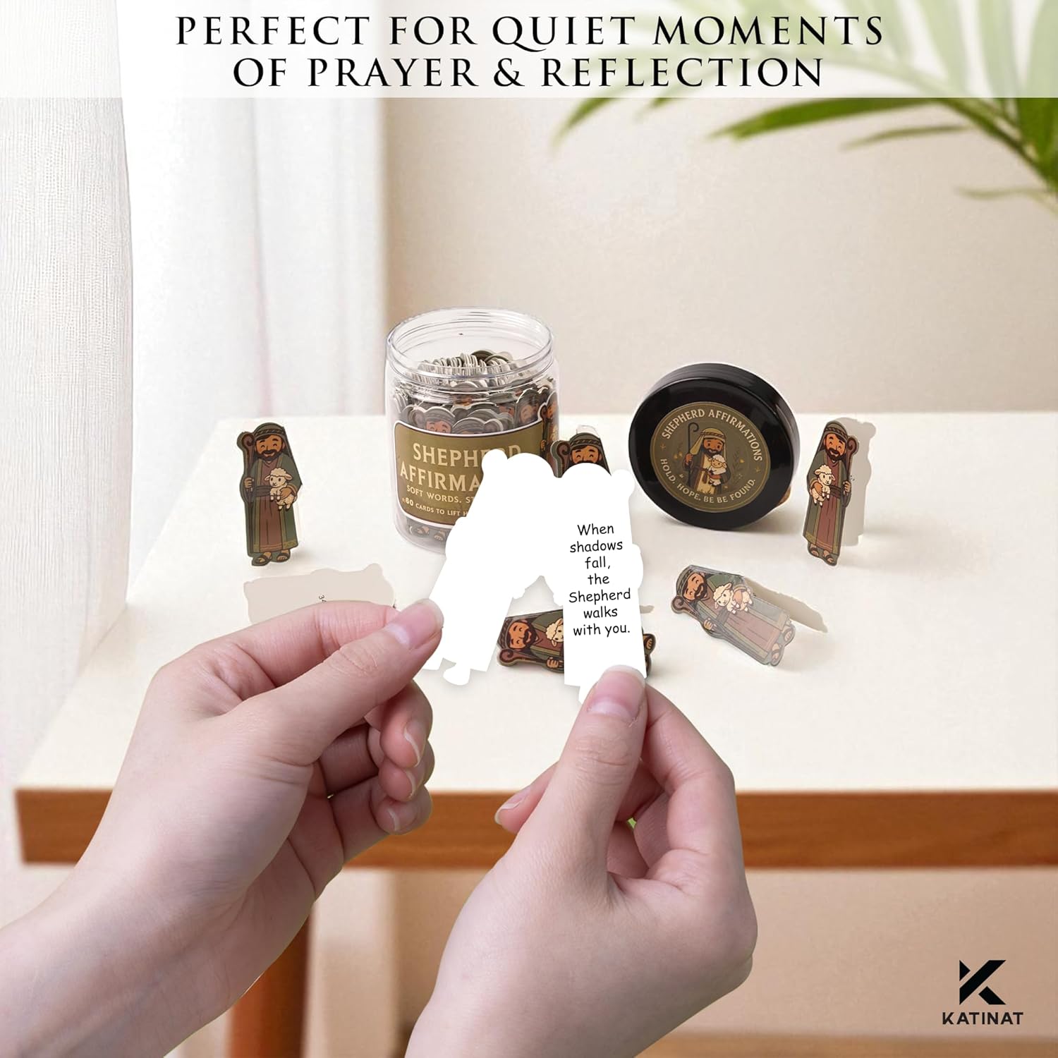 • Unique Shepherd & Lamb Design – Each of the 60 cards is beautifully cut-out with a shepherd and lamb illustration, a timeless symbol of faith, guidance, and comfort. Not just words – but art you can hold.