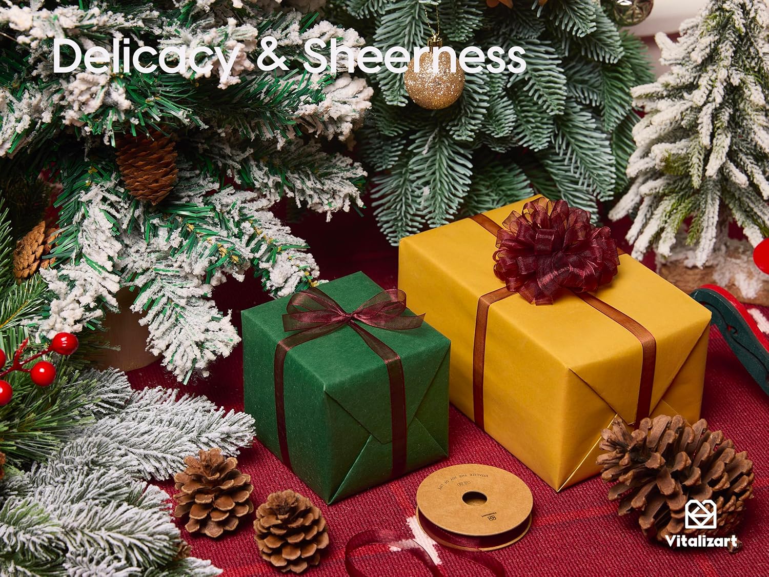 Vitalizart 3/8" x 30Yd Organza Ribbon Christmas Red Sheer Ribbons Set 10 Yd x 3 Rolls Handmade Eco-Friendly for Gift Wrapping Christmas Tree Crafts Bows Wedding Invitations Wreaths Wrap