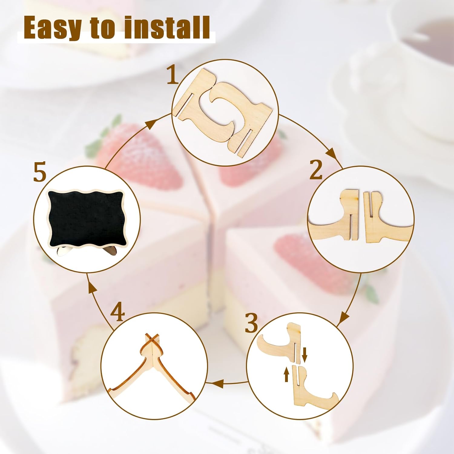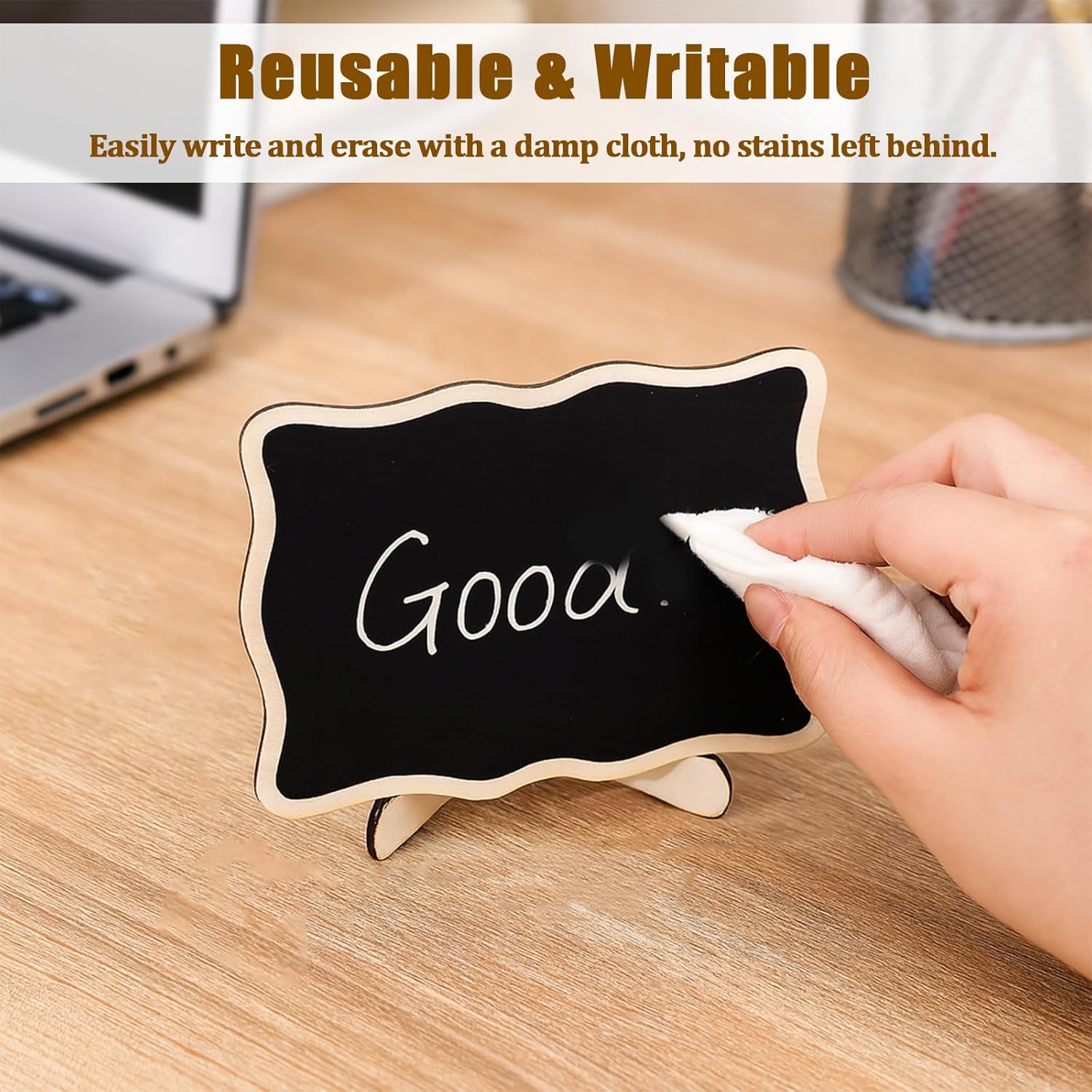 10PCS Mini Chalkboard Signs, Framed Small Chalk Board Food Labels with Easel Stand, Reusable Writable Blackboard with 2 Chalks, Wood Place Cards for Weddings, Birthday Parties, Buffet (Wave)