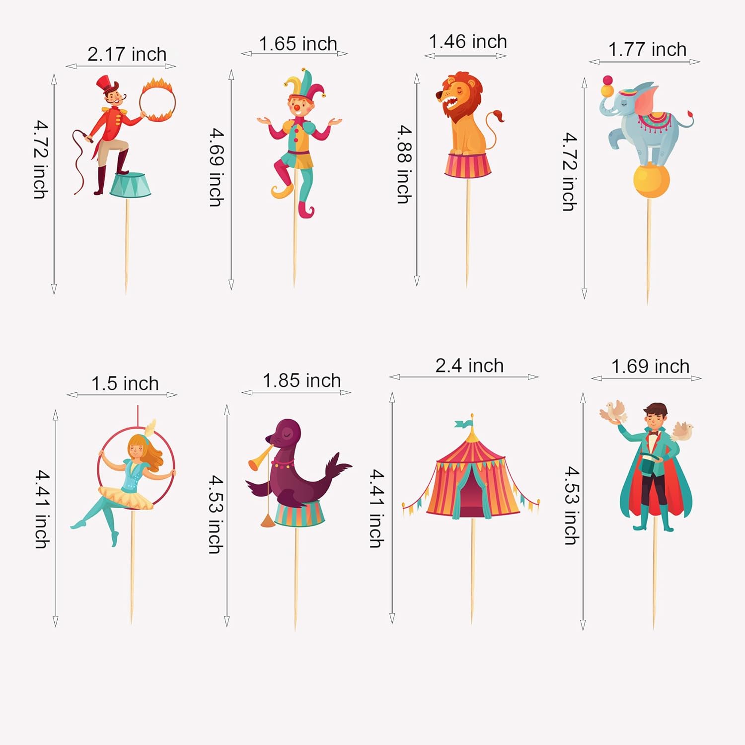 • Package include 24pcs circus cupcake toppers, size fits most cake and is the ideal for cake.