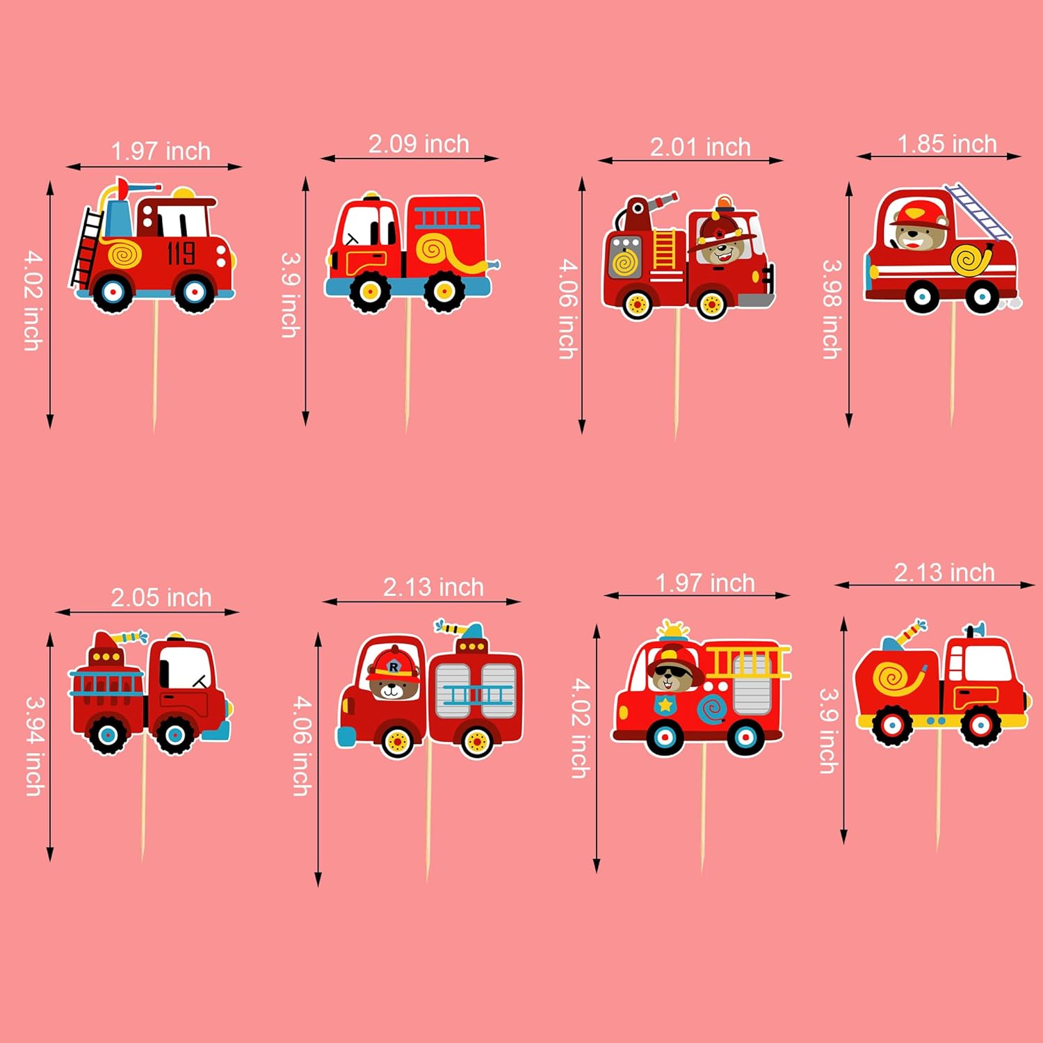 24pcs Fire Truck Cupcake Toppers Bear Firefighter Fire Truck Birthday Decorations Fireman Birthday Party Decorations