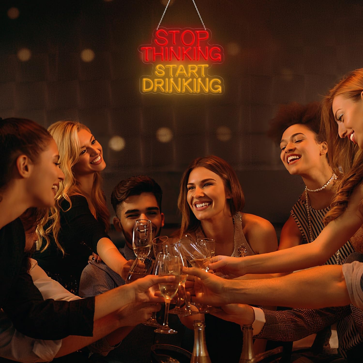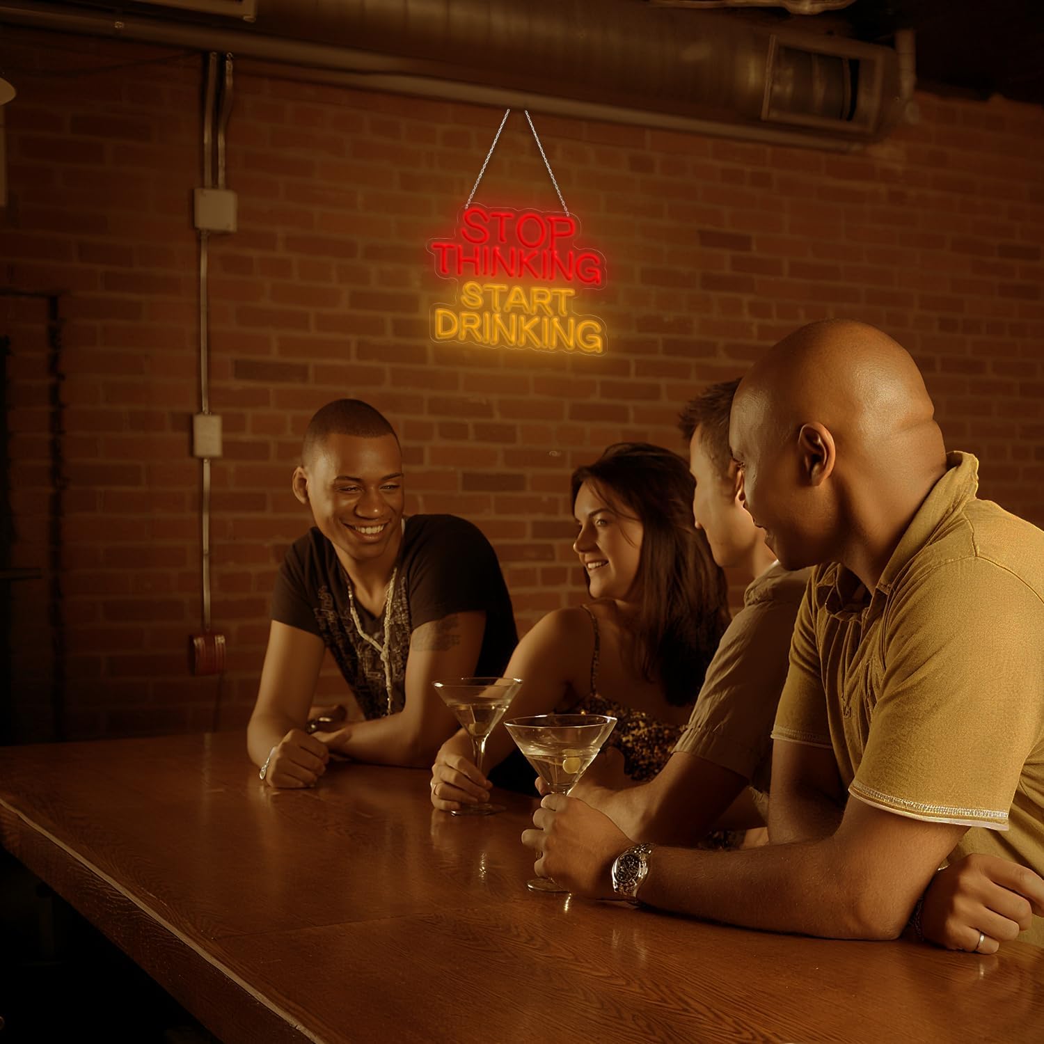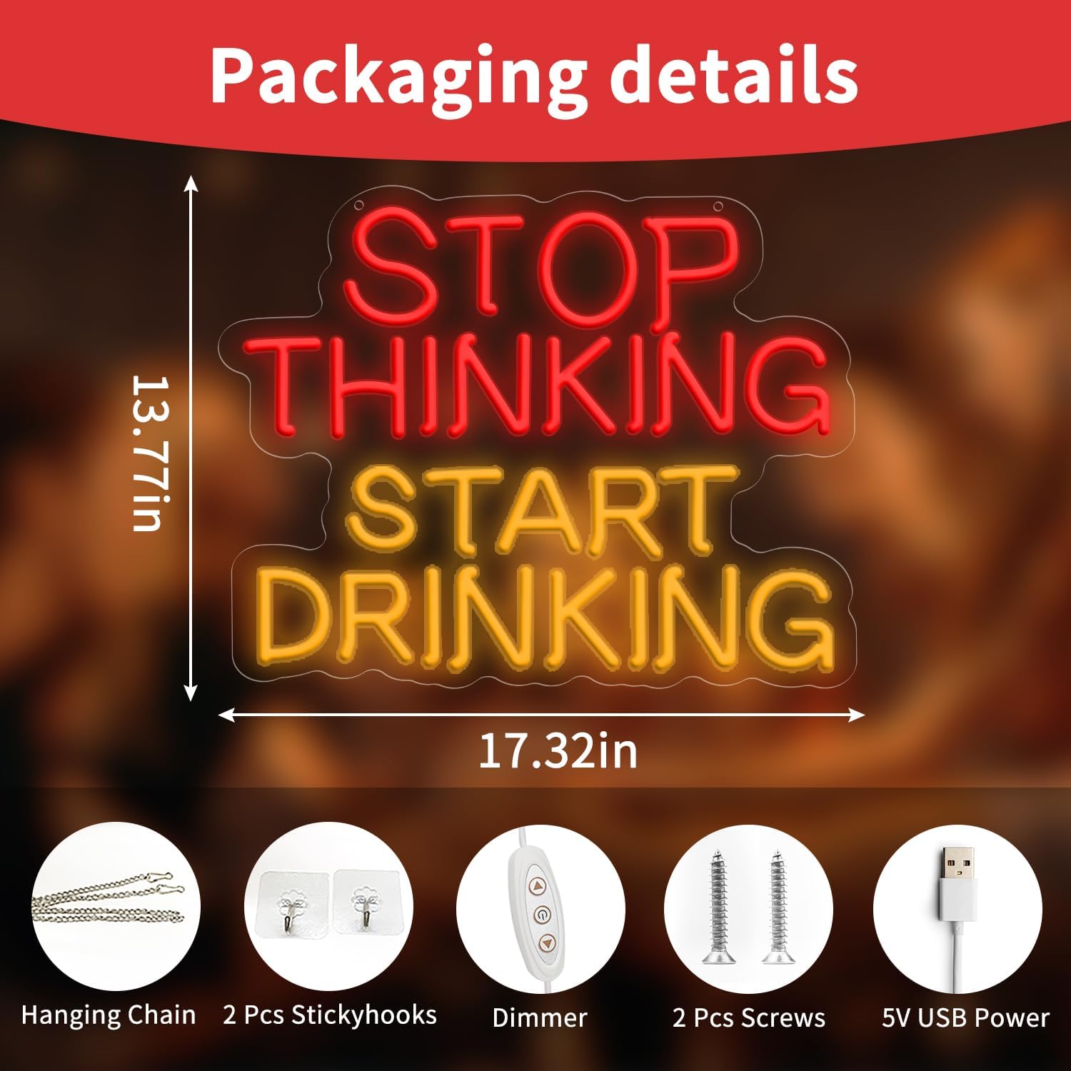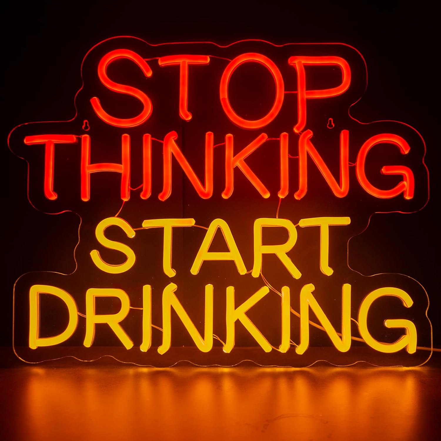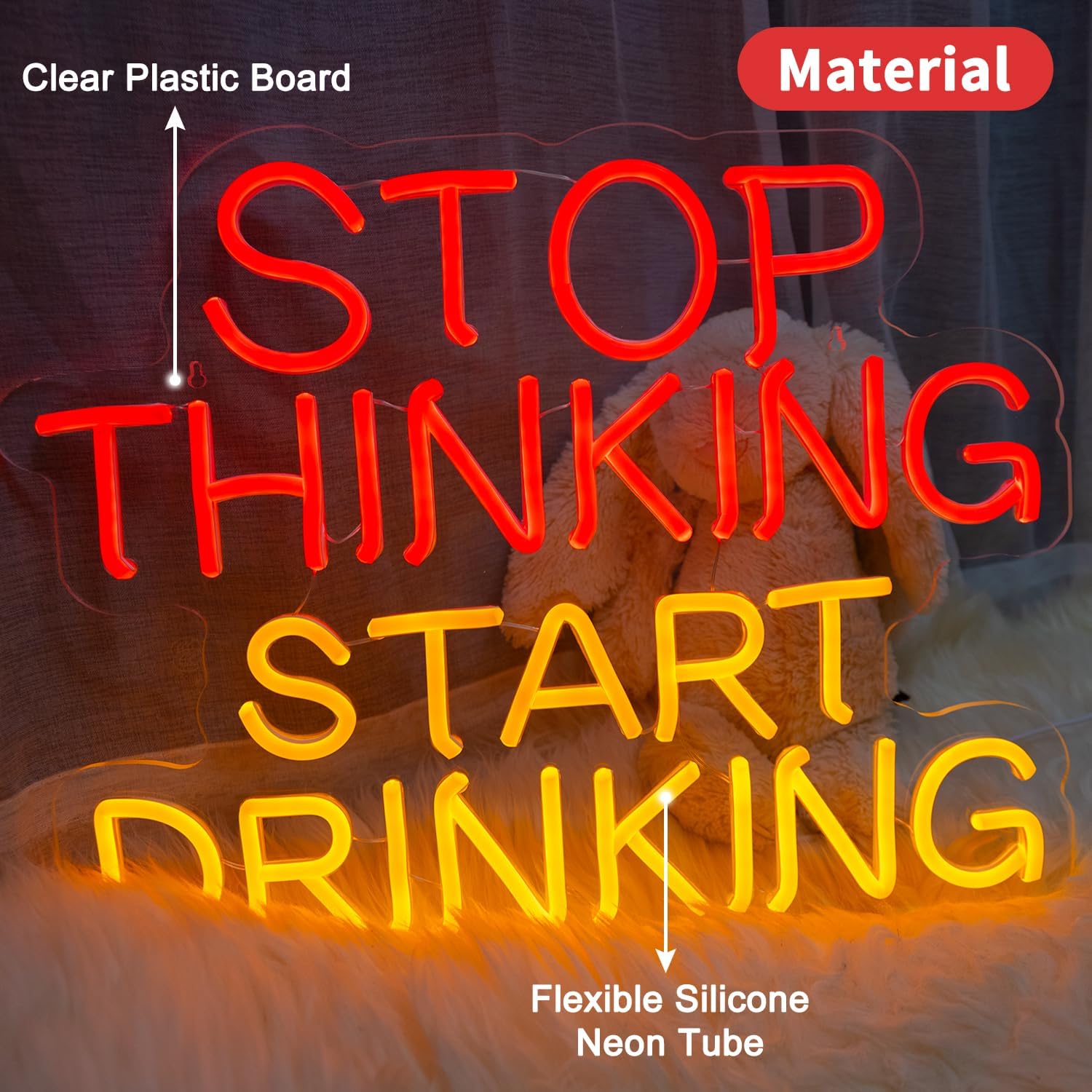 • 【Heartwarming Design 】Stop Thinking Start Drinking neon Sign is a simple yet powerful reminder to embrace the present moment. This neon light can help us release stress, regulate emotions, and embrace life with a positive and optimistic attitude