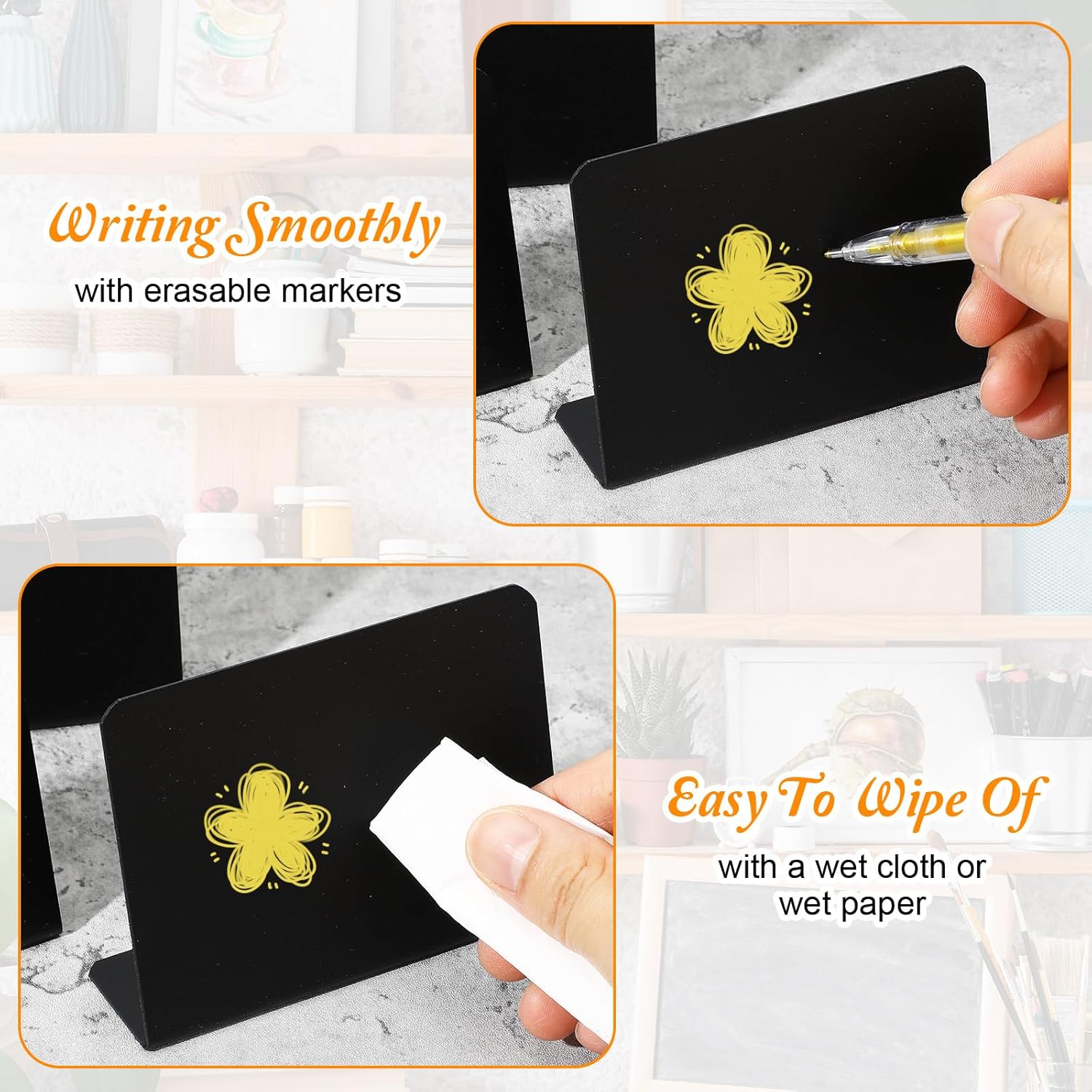 • USER-FRIENDLY DESIGN: The L-shaped base provides stable freestanding support with optimal viewing angles. These mini chalk board signs for food arrive ready to use - just write your message and display. Perfect for both professional food service and special event home use