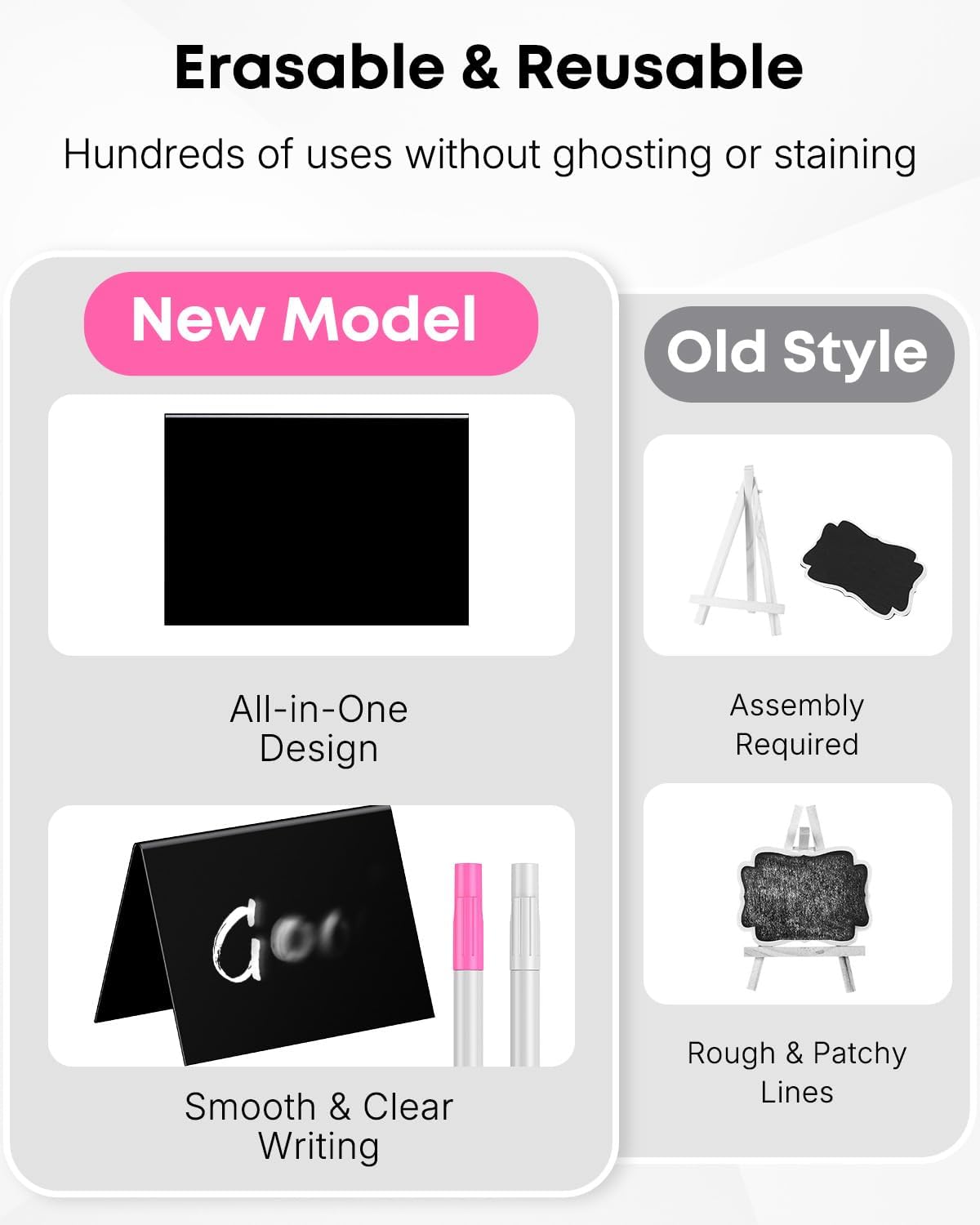 • Erasable & Reusable: Write and erase hundreds of times without ghosting or staining. The smooth surfaces of these small chalkboard signs ensure effortless writing and cleanup. To refresh your display, simply wipe the board with a damp cloth