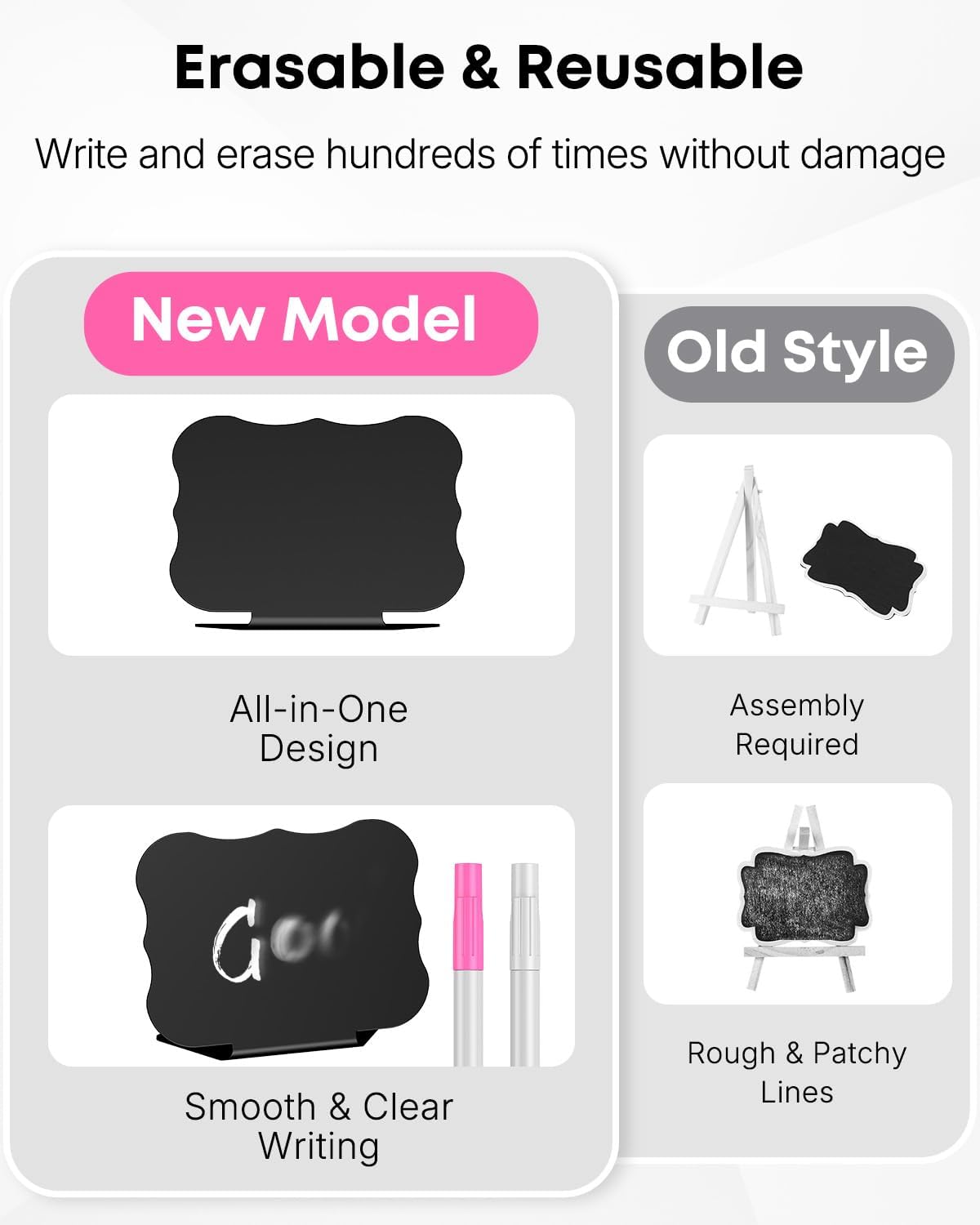 • Erasable & Reusable: Write and erase hundreds of times without damage. The smooth surfaces of these small chalkboard signs ensure effortless writing and cleanup. To refresh your display, simply wipe the board with a damp cloth