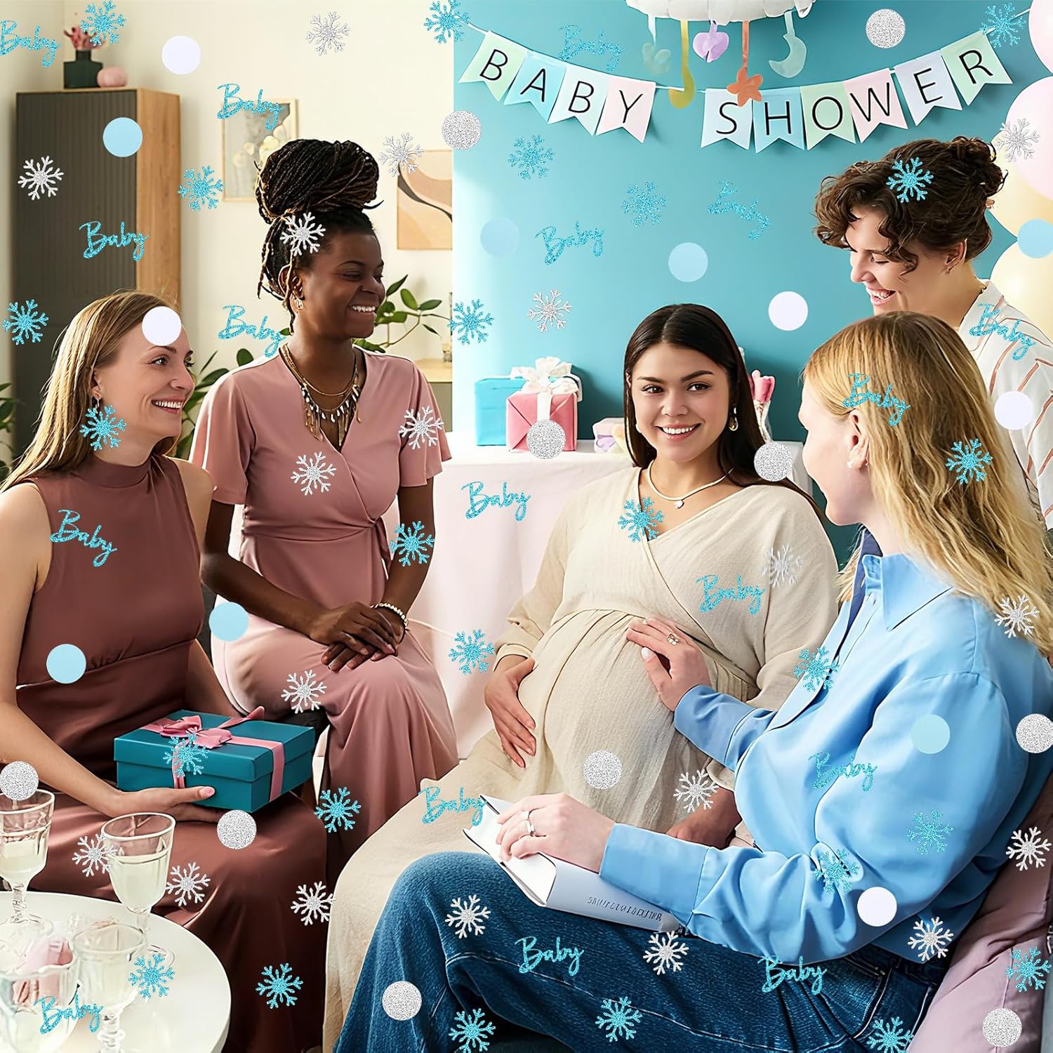 • Diverse Patterns: Winter baby shower decorations are designed with exquisite and diverse pattern, including blue and silver flashing snowflakes, blue-themed "Baby",match with white, silver and blue polka-dot confetti. Various patterns are combined with snowflake elements, winter wonderland baby shower decoration is suitable for Christmas and winter atmosphere, and adds a romantic, warm and seasonal visual experience to the baby shower
