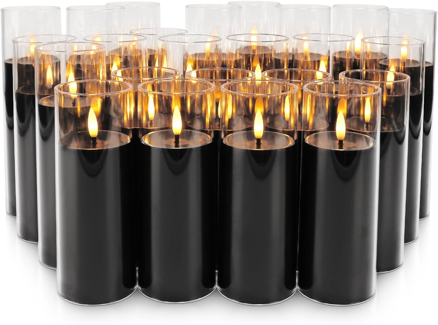 24Pack Black Flickering Flameless LED Candles with Remote & Timer, Small Pillar Acrylic LED Candles Perfect for Indoor/Outdoor Decor,Wedding,BBQ and Gift - Easily Create a Magical Atmosphere.
