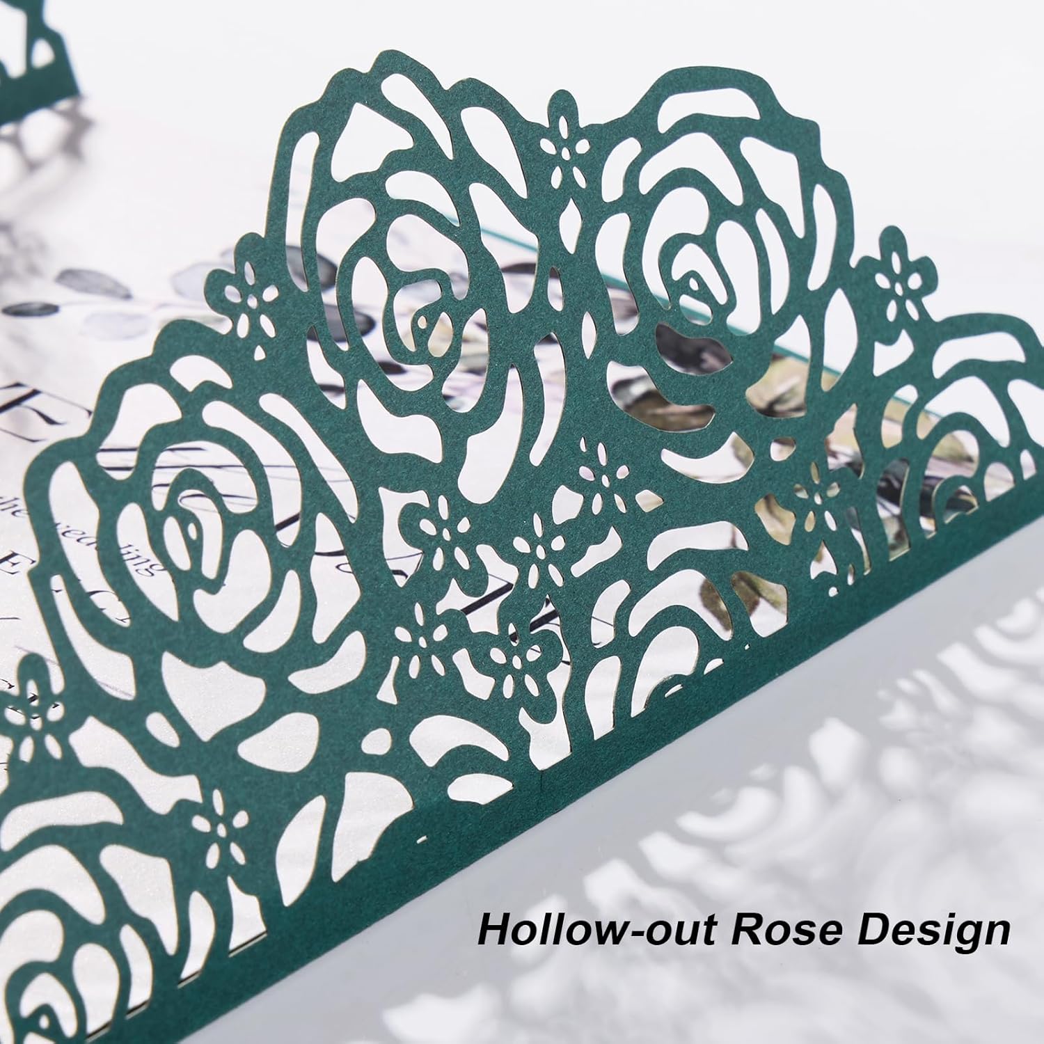 Emerald Green Wedding Invitations with Envelopes and Rsvp Cards, Blank Inner Cards, Ribbons, for Wedding Baby Shower Quinceañera Party Invitations 50 Sets