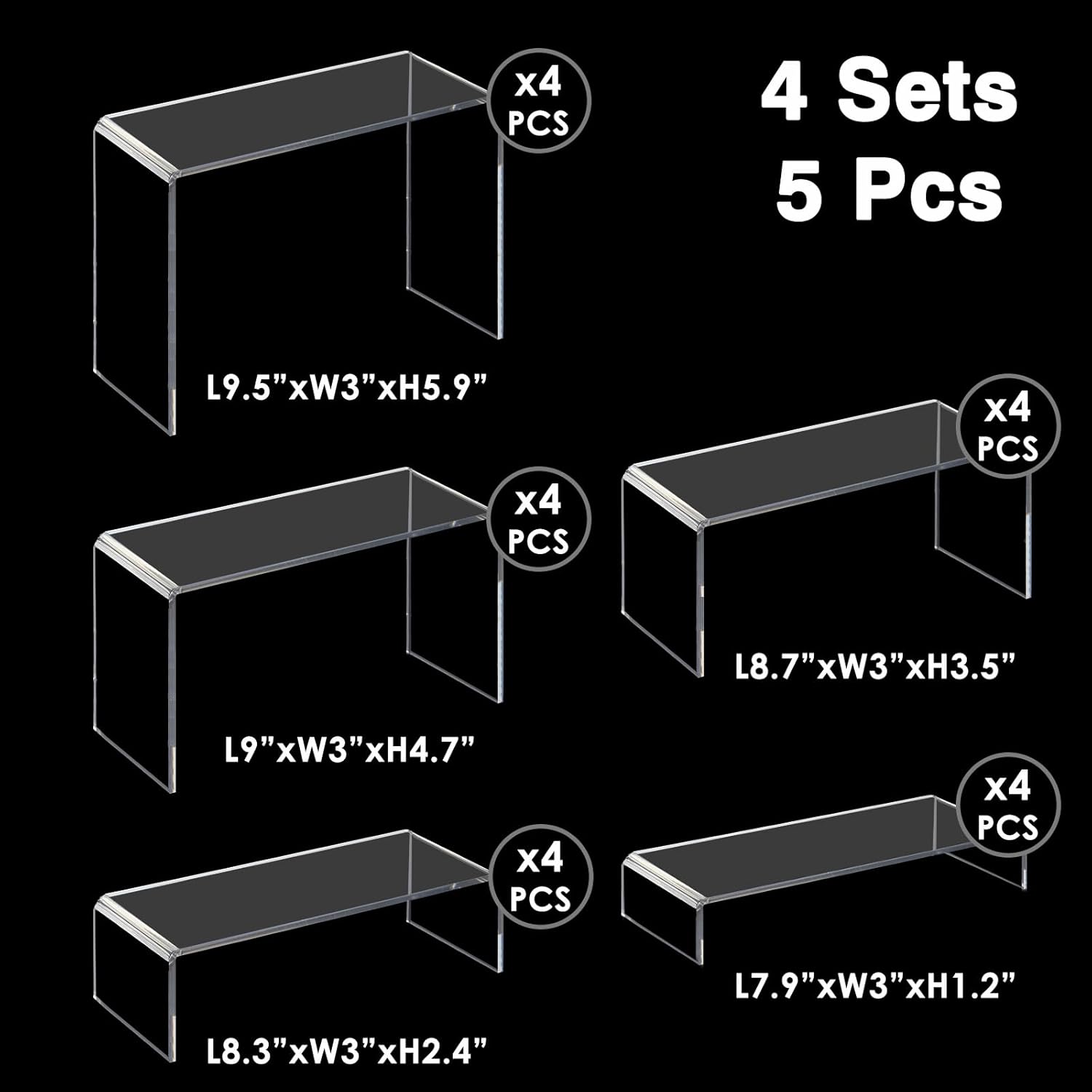 Fixwal 20pcs Large Acrylic Risers 4 Set Acrylic Display Stand Perfume Organizer Stands Clear Rectangular Dessert Table Display Set, Display Shelf for Show Cupcake, Figures, Jewelry, Toys