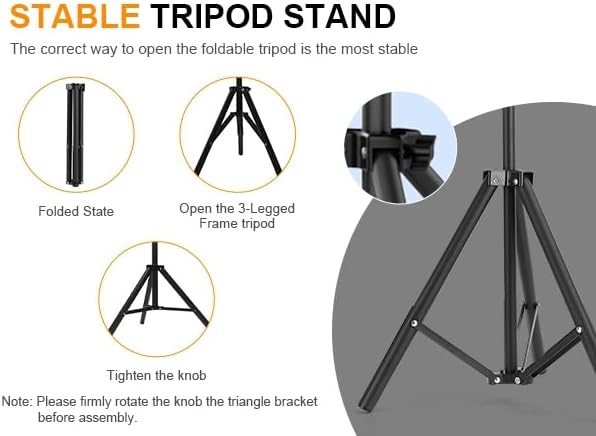 • 【Stable Tripod Stand】: Made of with enhanced metal with rustproof coating, the triangle brackets ensure high strength and durability, not easy to bend, deform or break. Package also includes grounding nails, ropes and sandbags, adding stability and security even in windy days.