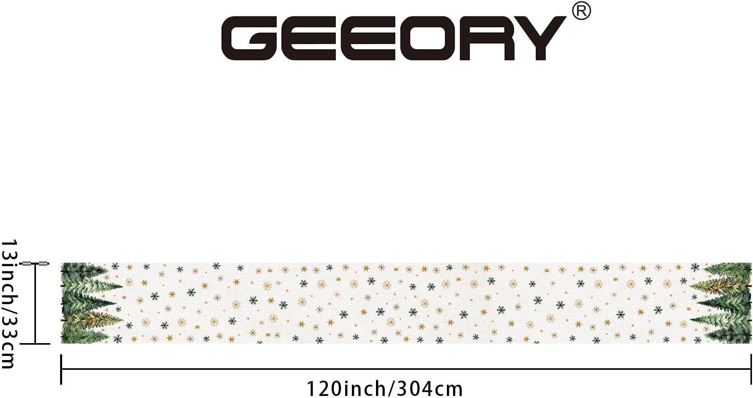 GEEORY Christmas Table Runner 13x120 Inch, Xmas Tees Snowflakes Holiday Decorative Farmhouse Table Decoration for Kitchen Dinning, Indoor Outdoor Dinner Party Decor (Light Green) GT166-120