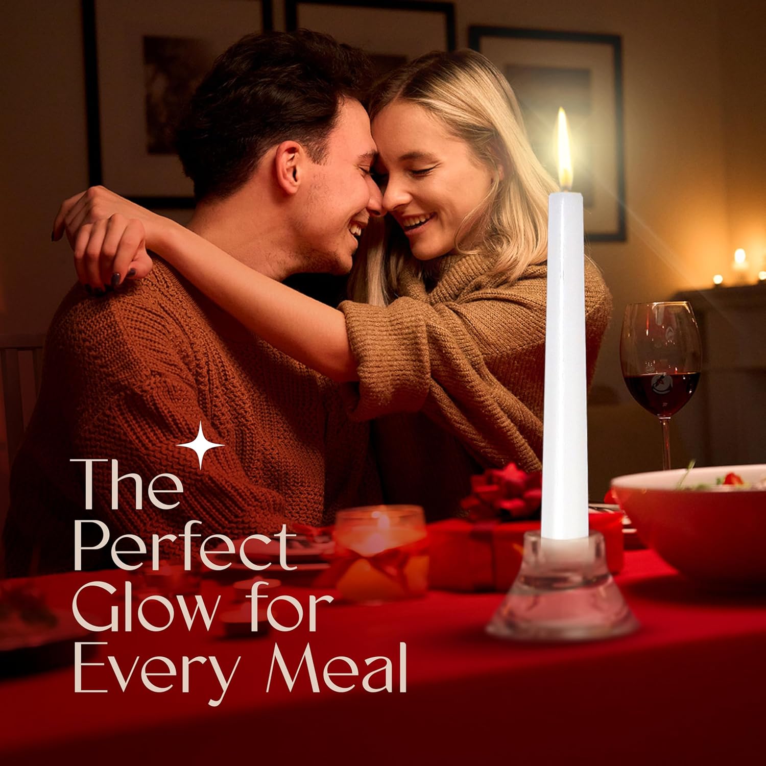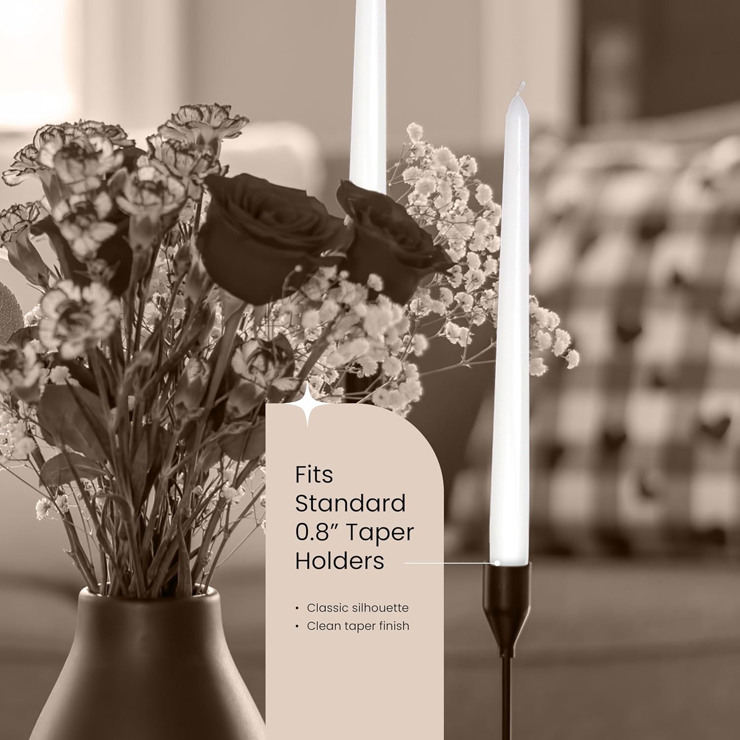 • Classic Fit for Candle Holders – Built with a tapered 0.8” base, these long white candles fit snugly into most standard candlesticks. Perfect for dining tables, event centerpieces, or meditation spaces, they provide stable, reliable light every time.