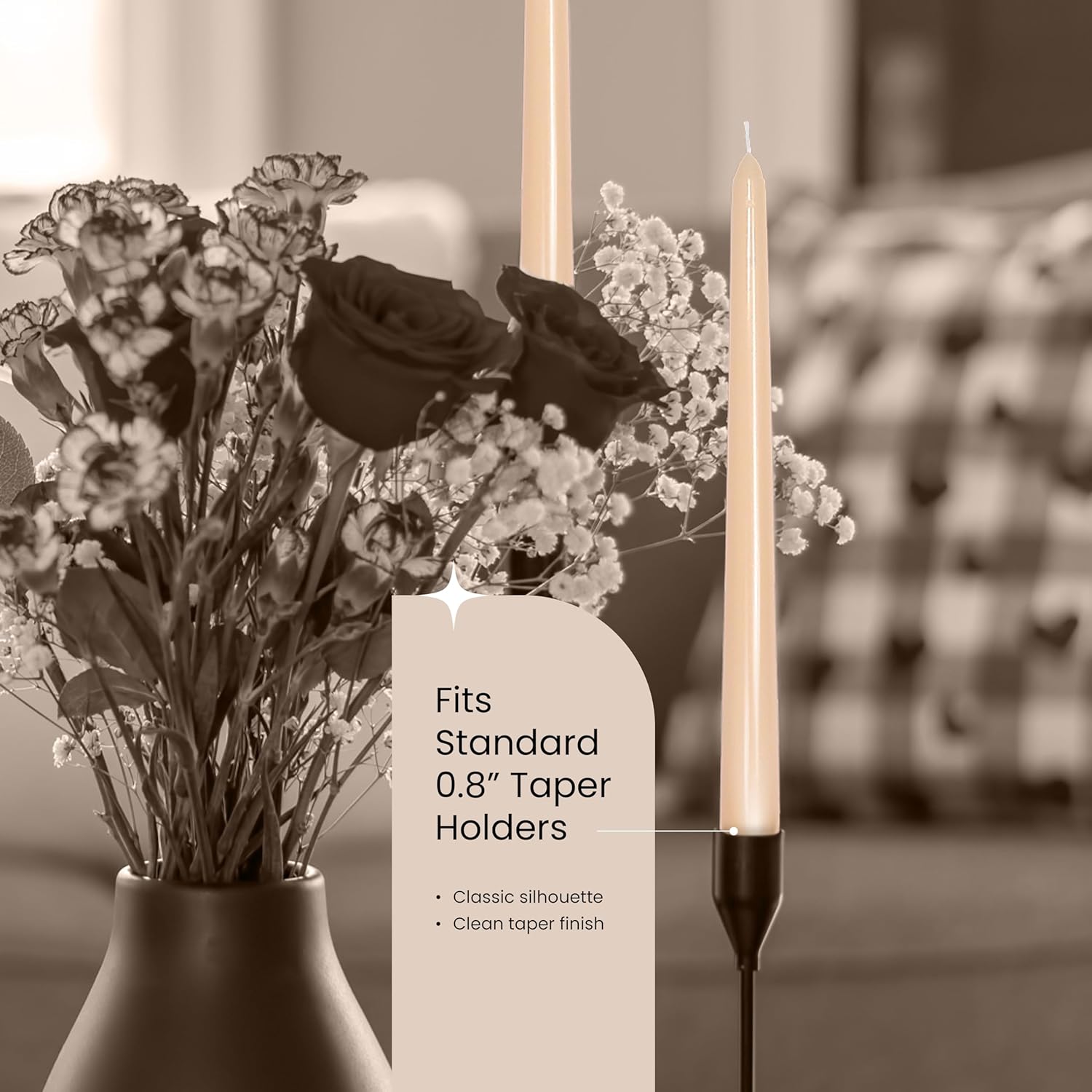 • Secure Fit for Most Holders – Built with a 0.8” tapered base, these beige stick candles fit snugly in standard candlesticks, providing steady, dripless light for mantels, tablescapes, or event centerpieces.