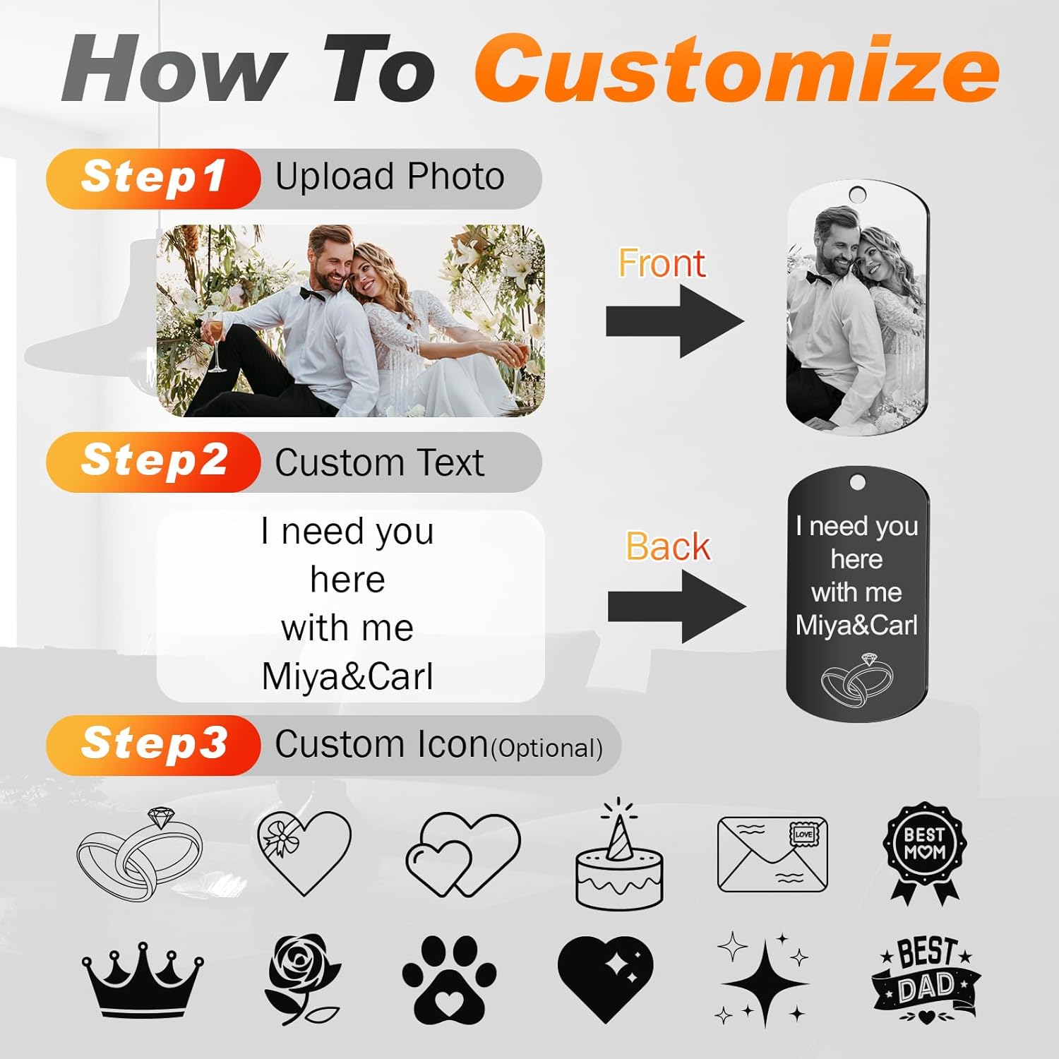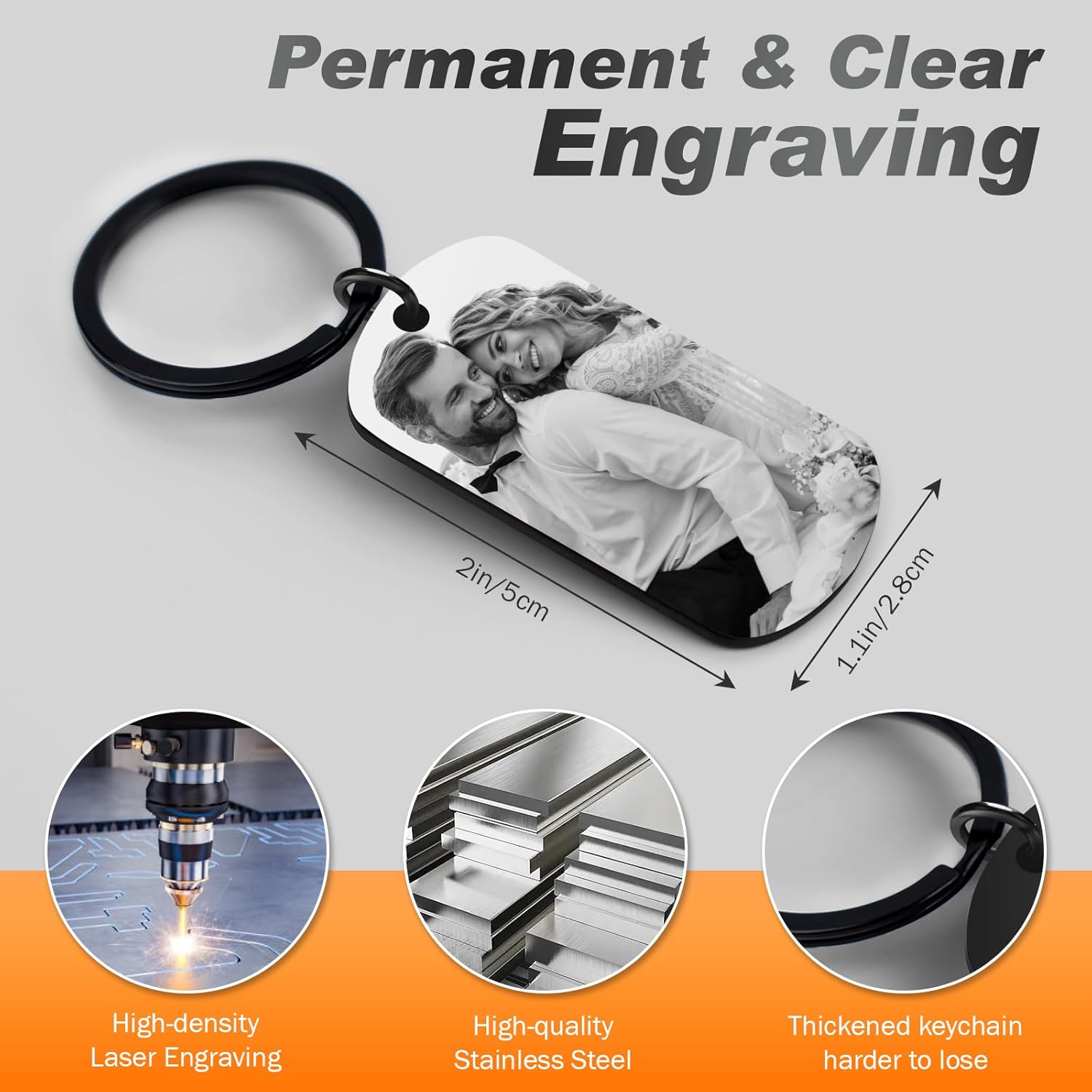 • 🎁【Premium Materials & Craft】:This custom photo keychain is crafted from rust-resistant and deformation-resistant stainless steel, precision-polished and electroplated for a smooth, textured finish. It's also hypoallergenic and scratch-resistant. Using advanced high-precision laser engraving technology, the designs and text are detailed, clear, and permanent, ensuring they remain as good as new even after years of use.