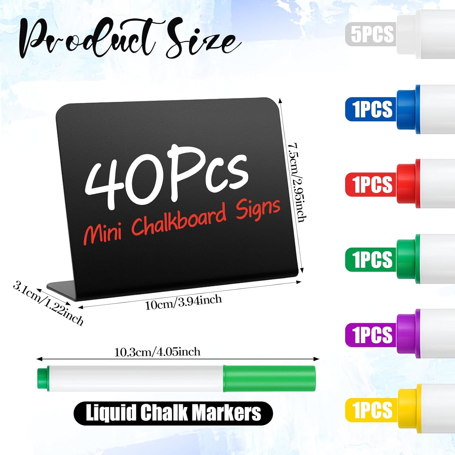 • Complete Package: Includes 40 packs of mini chalkboards and 10 pens (5 white, 1 each of red, yellow, dark green, dark blue, and purple) in assorted colors, providing everything you need for your food signs for buffet setup.