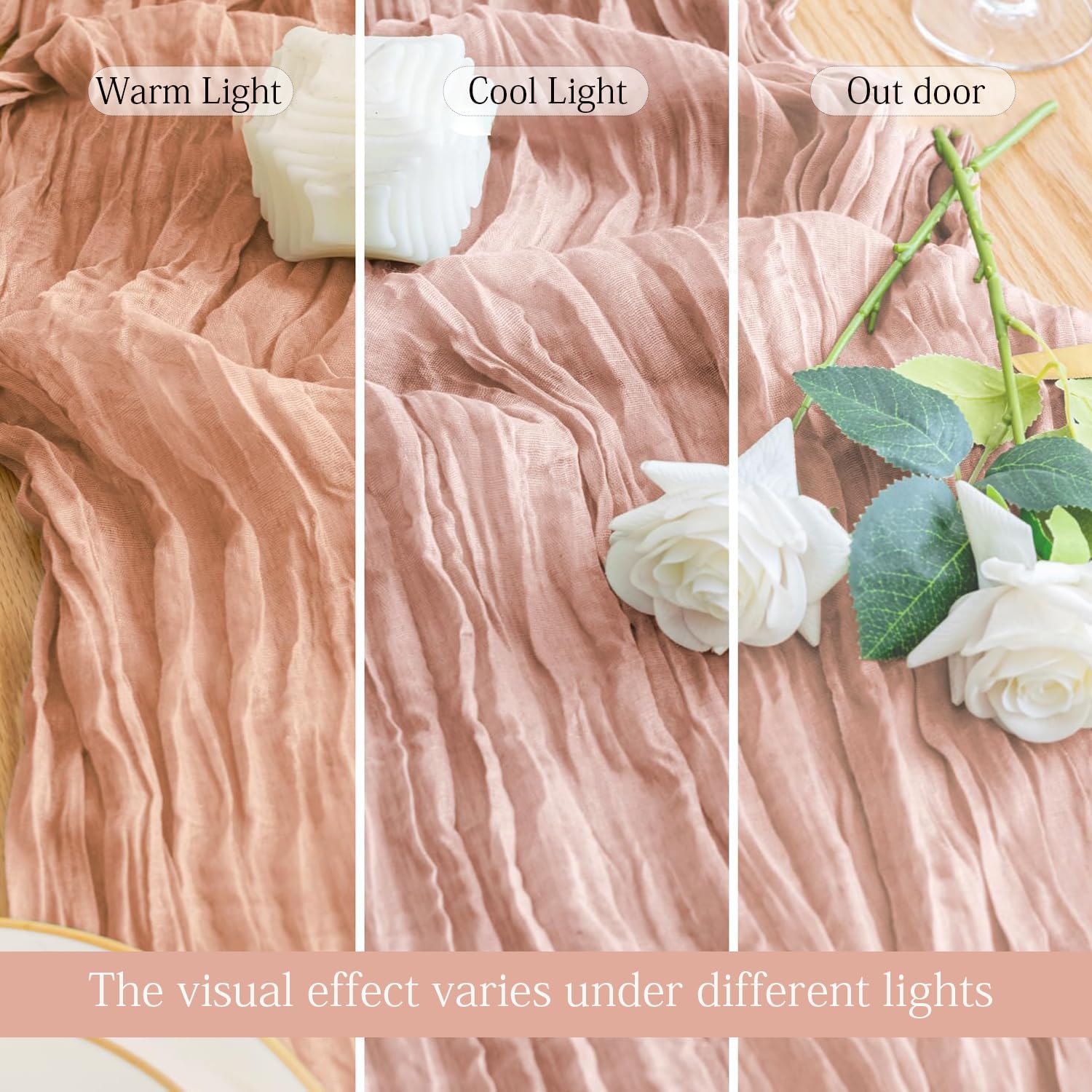 • 【Premium Material】The dusty pink cheesecloth table runner is made of high-quality gauze fabric. Carefully sewn, delicate edge, not easy to lose thread, not easy to decolorize, lightweight and skin-friendly. They come twisted up, so when you unwrap them you can stretch and smooth them out as much as you'd like, or leave them more bunched and crinkly. These cheesecloth table runners compliment the floral arrangements & centrepieces without competing for space- the perfect textural addition and bring an upscale style to your decorations.
