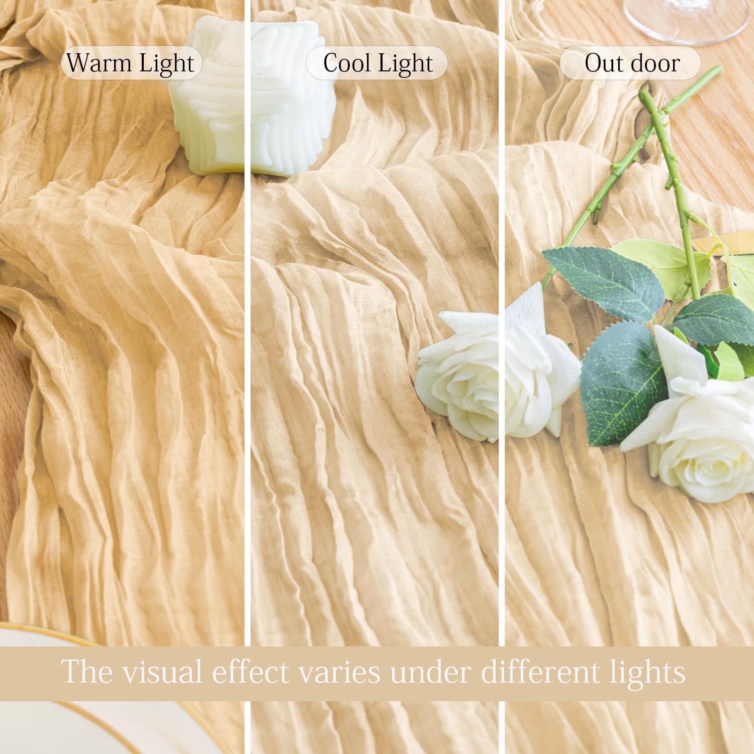 • 【Premium Material】The beige table runners is made of high-quality gauze fabric. Carefully sewn, delicate edge, not easy to lose thread, not easy to decolorize, lightweight and skin-friendly. They come twisted up, so when you unwrap them you can stretch and smooth them out as much as you'd like, or leave them more bunched and crinkly. These cheesecloth table runners compliment the floral arrangements & centrepieces without competing for space- the perfect textural addition and bring an upscale style to your decorations.