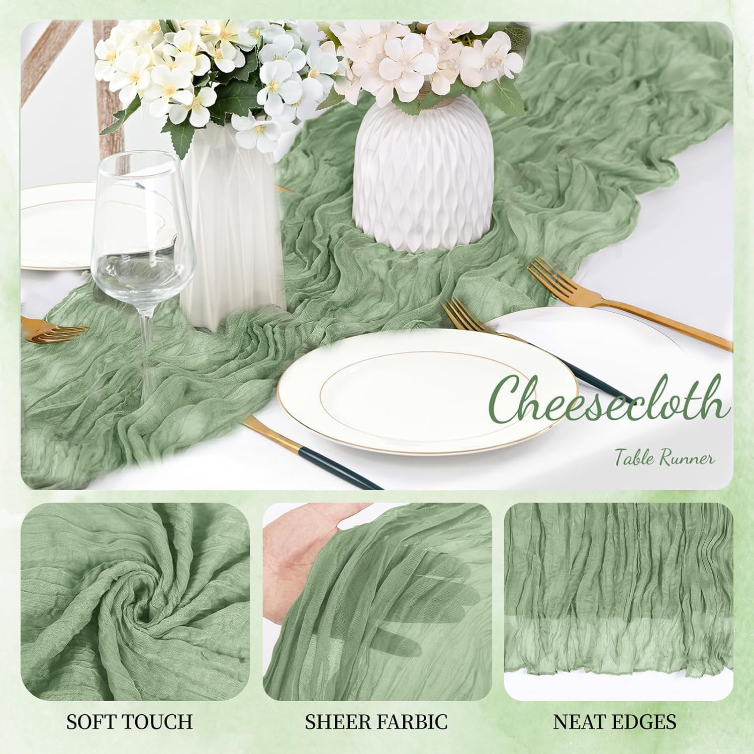 6 Pack Sage Green Cheesecloth Table Runner 23x120 inch Rustic Boho Gauze Table Runner 10 FT Long Sheer Cheese Cloth Fabric Table Runners for Romantic Wedding Bridal Shower Birthday Party Decor