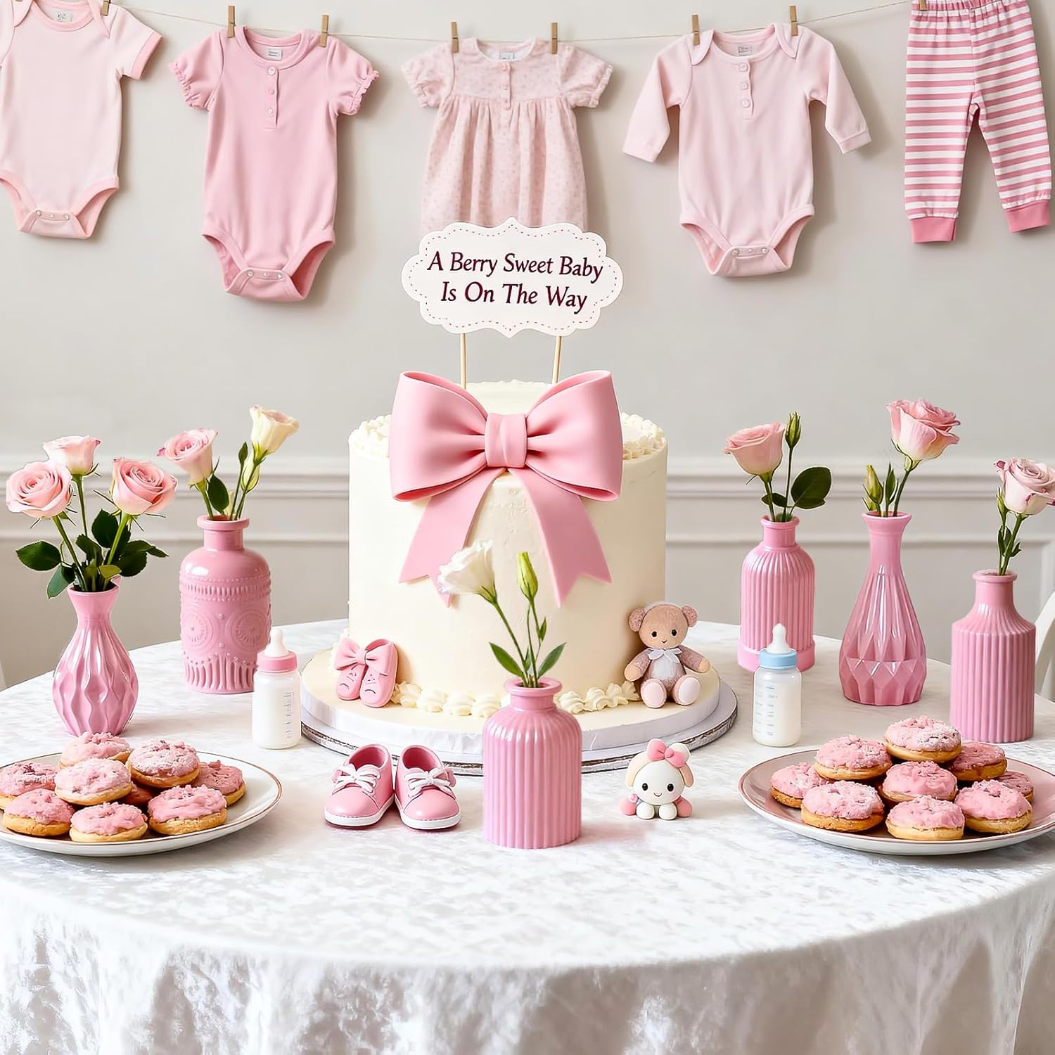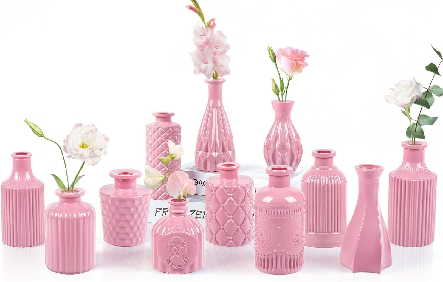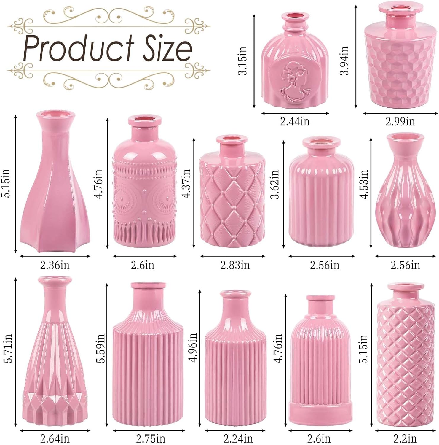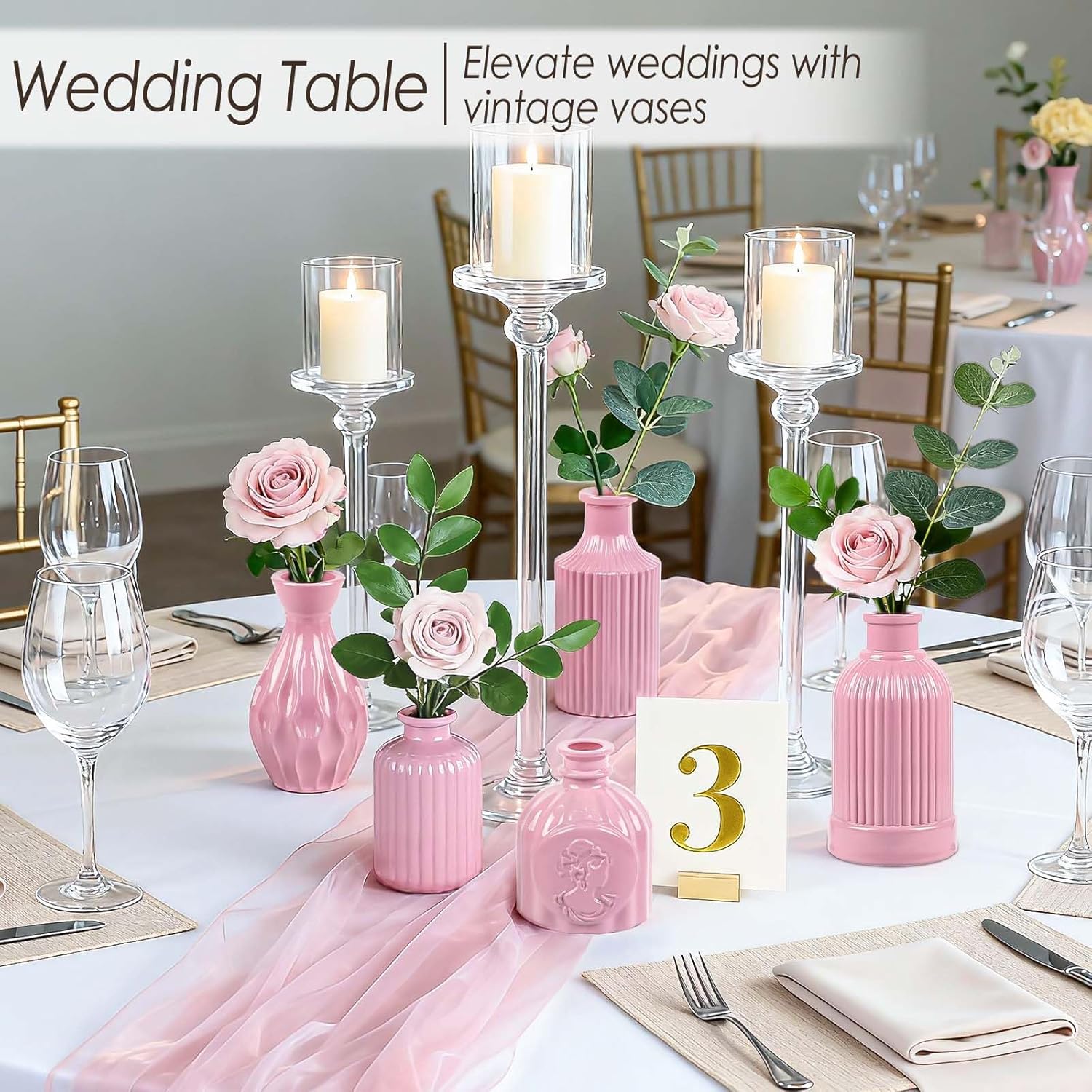 Baby Pink Glass Bud Vases Set of 12, Mini Flower Vase for Centerpieces, Small Vases in Bulk for Wedding Decoration, Vintage Vase for Baby Shower Centerpieces, Home Décor