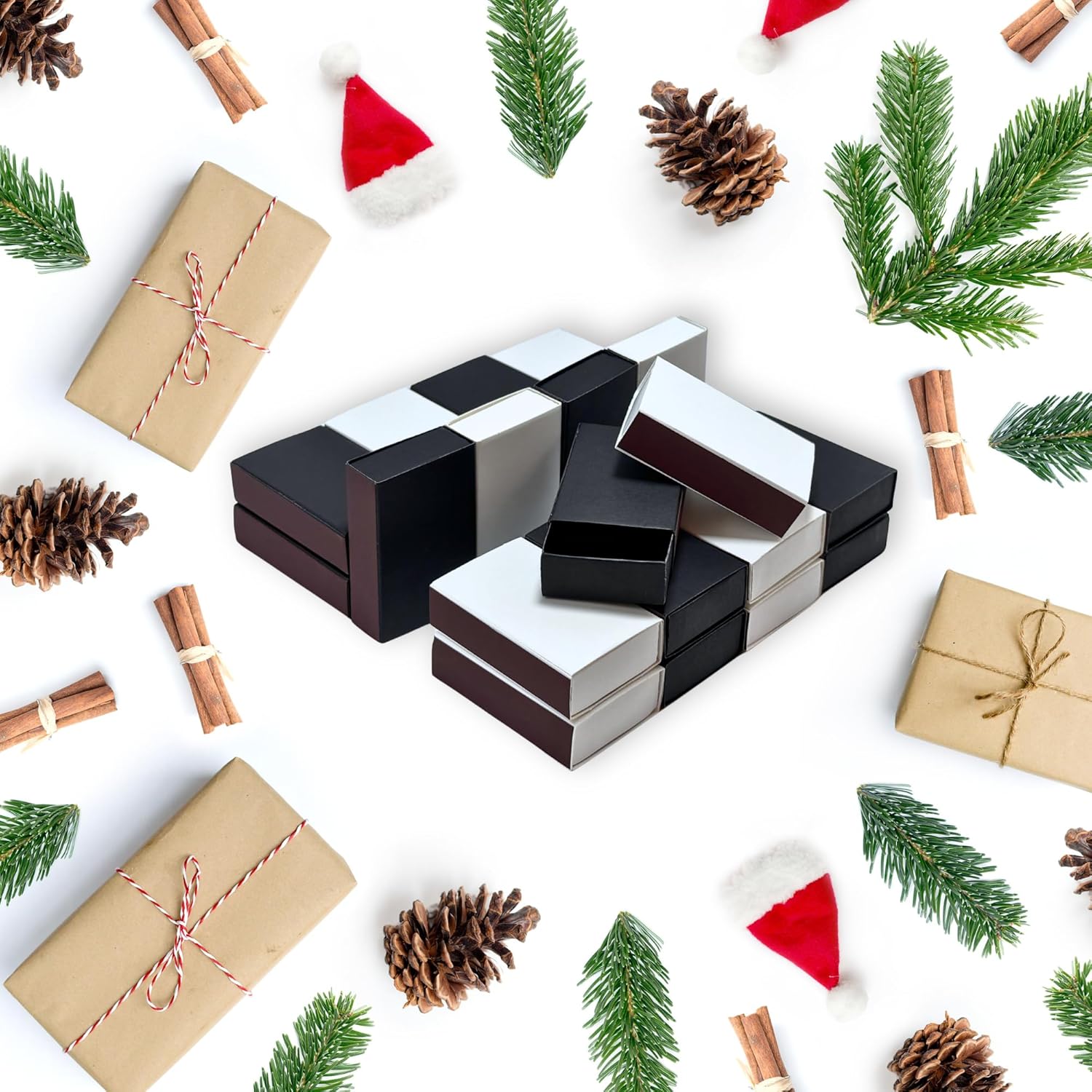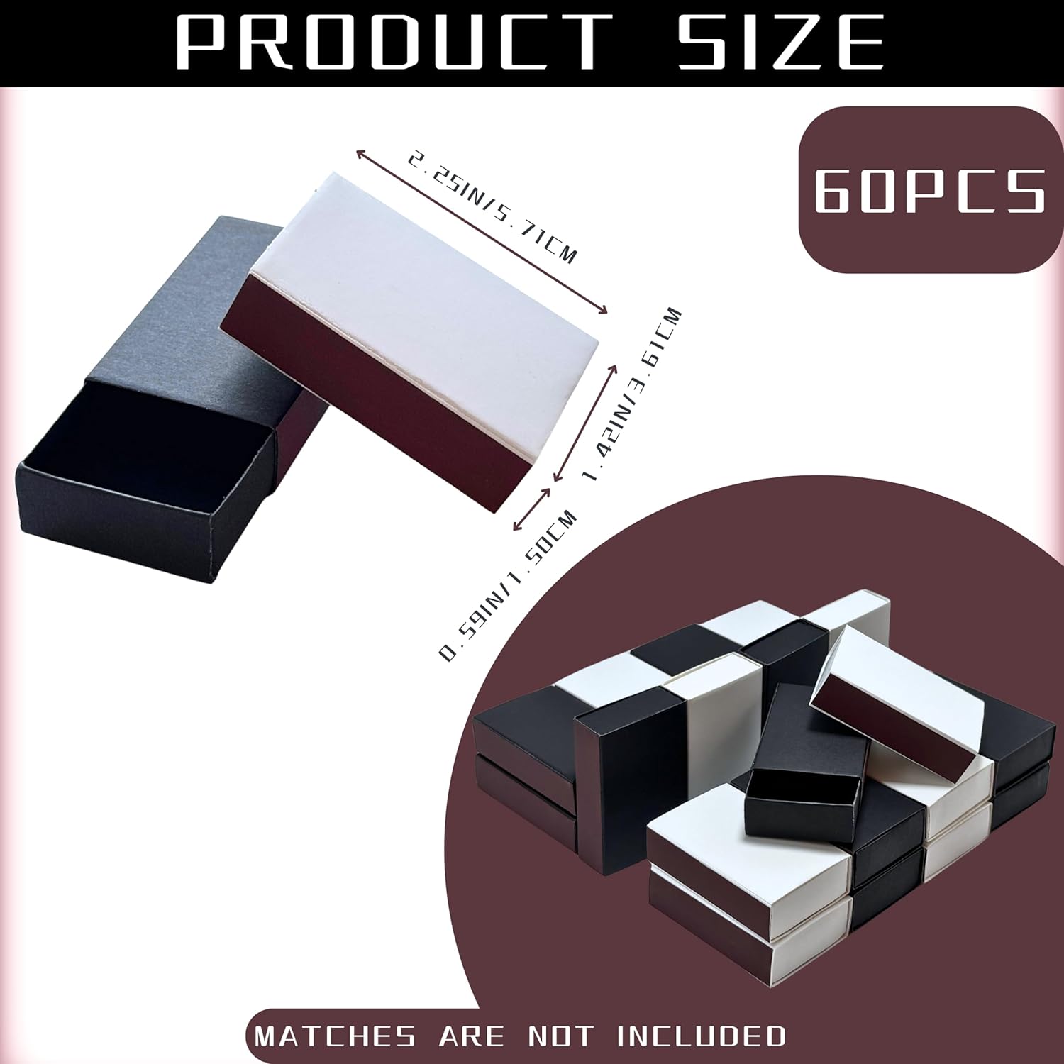 60pcs Blank Match Boxes, 2.25x1.42x0.59in Bulk White and Black Matchboxes DIY Plain Storage Containers Holders Double-Sided Striker Wedding Bridal Baby Shower Birthday Party Favor, No Matches Included