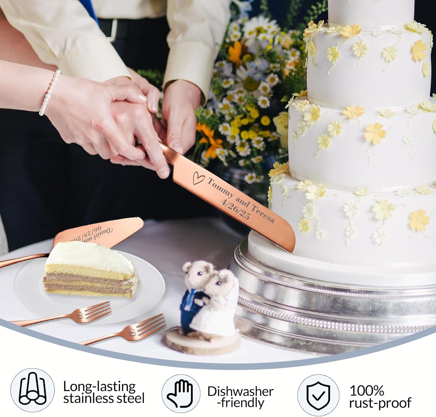 • Personalized Wedding Cake Cutting Set : Our wedding cake cutting set allows you to engrave names, making it a one - of - a - kind keepsake. Commemorate your marriage with this customized set, adding a touch of intimacy for special Ceremony