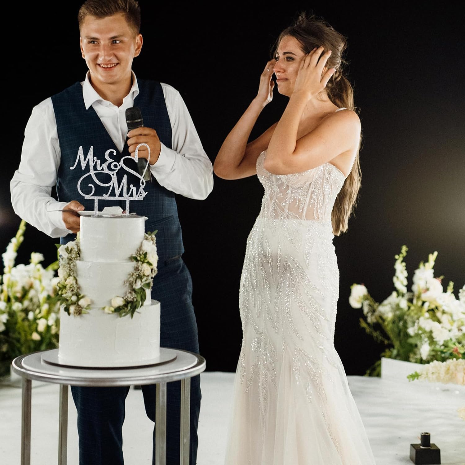 • 【Premium Material】: The high-quality material of mr and mrs cake topper provides a shiny, adding elegance to your wedding cake toppers bride and groom.