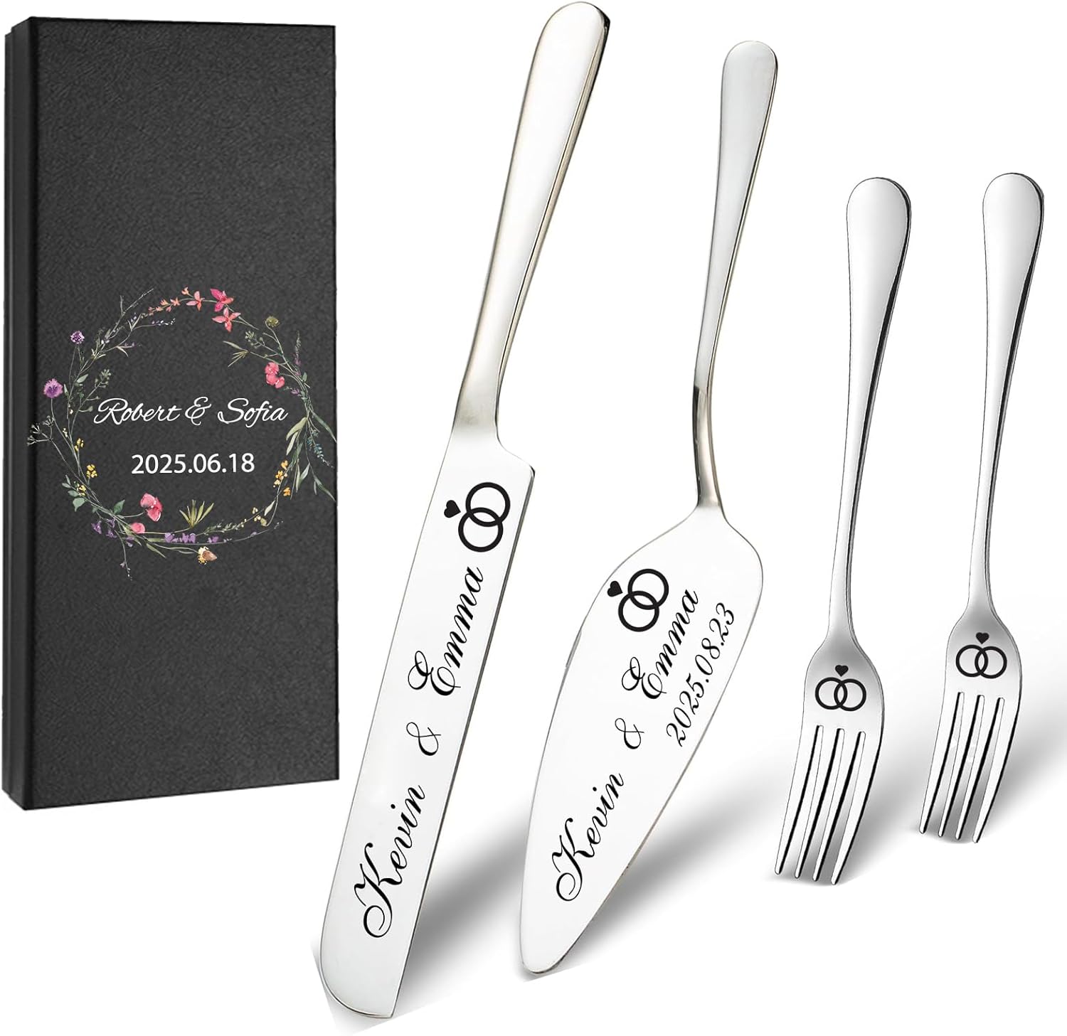 • Unforgettable Gift: Our personalized cake cutting sets make for a thoughtful and memorable gift that will be treasured by the bride and groom. Add a touch of personalization to your registry with our cake cutter and server sets, ensuring that your guests can contribute to a cherished part of your wedding day.