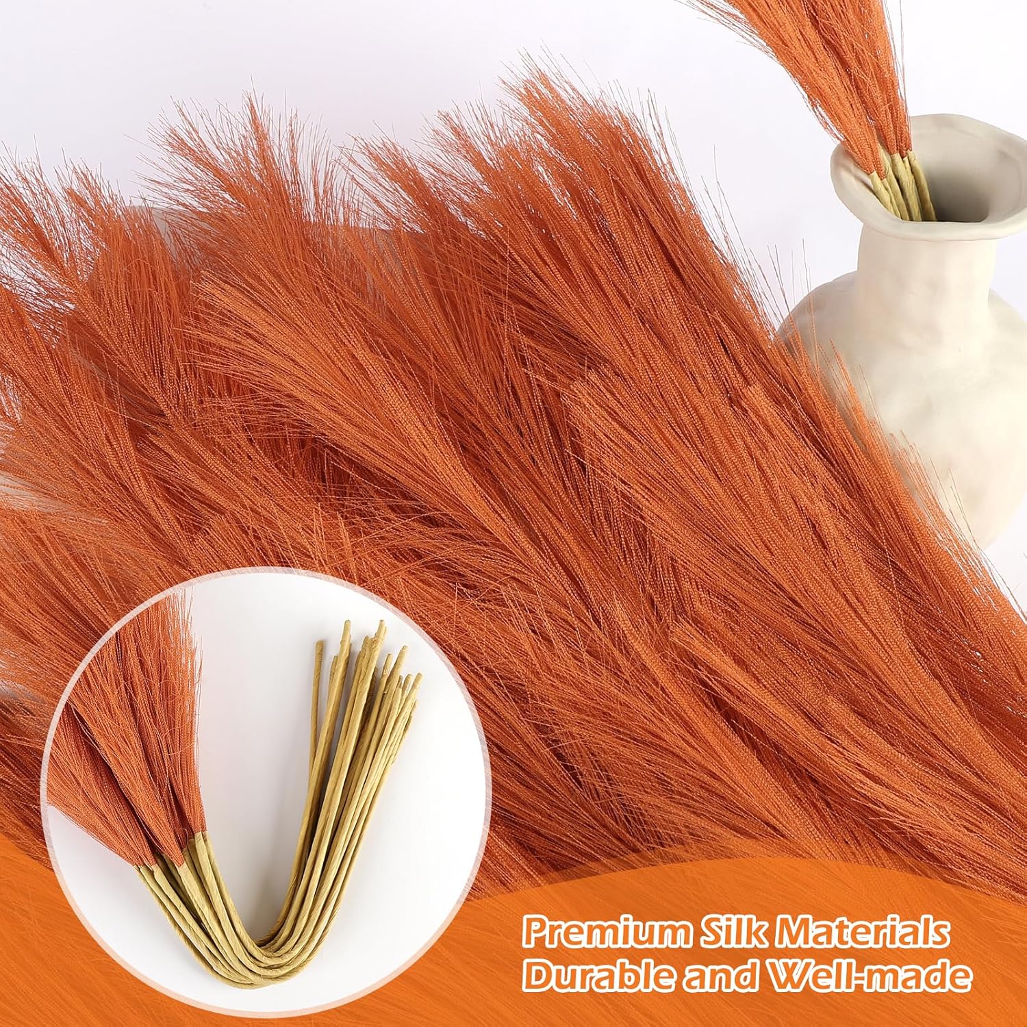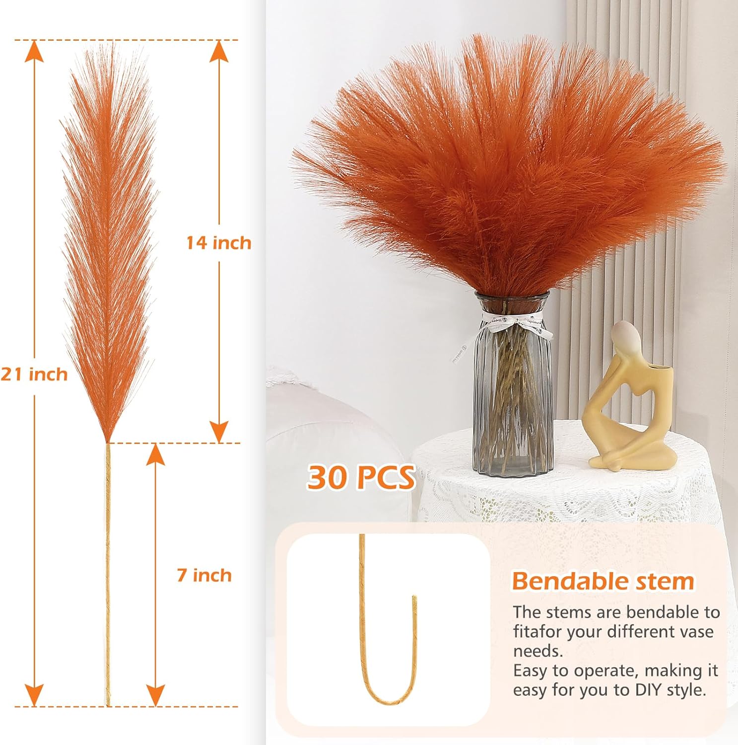 Orange Pampas Grass Decor 30 Pcs 21.7 Inch Faux Pampas Grass Bulk Artificial Dried Flowers Small Vase Filler Pompas Grass.