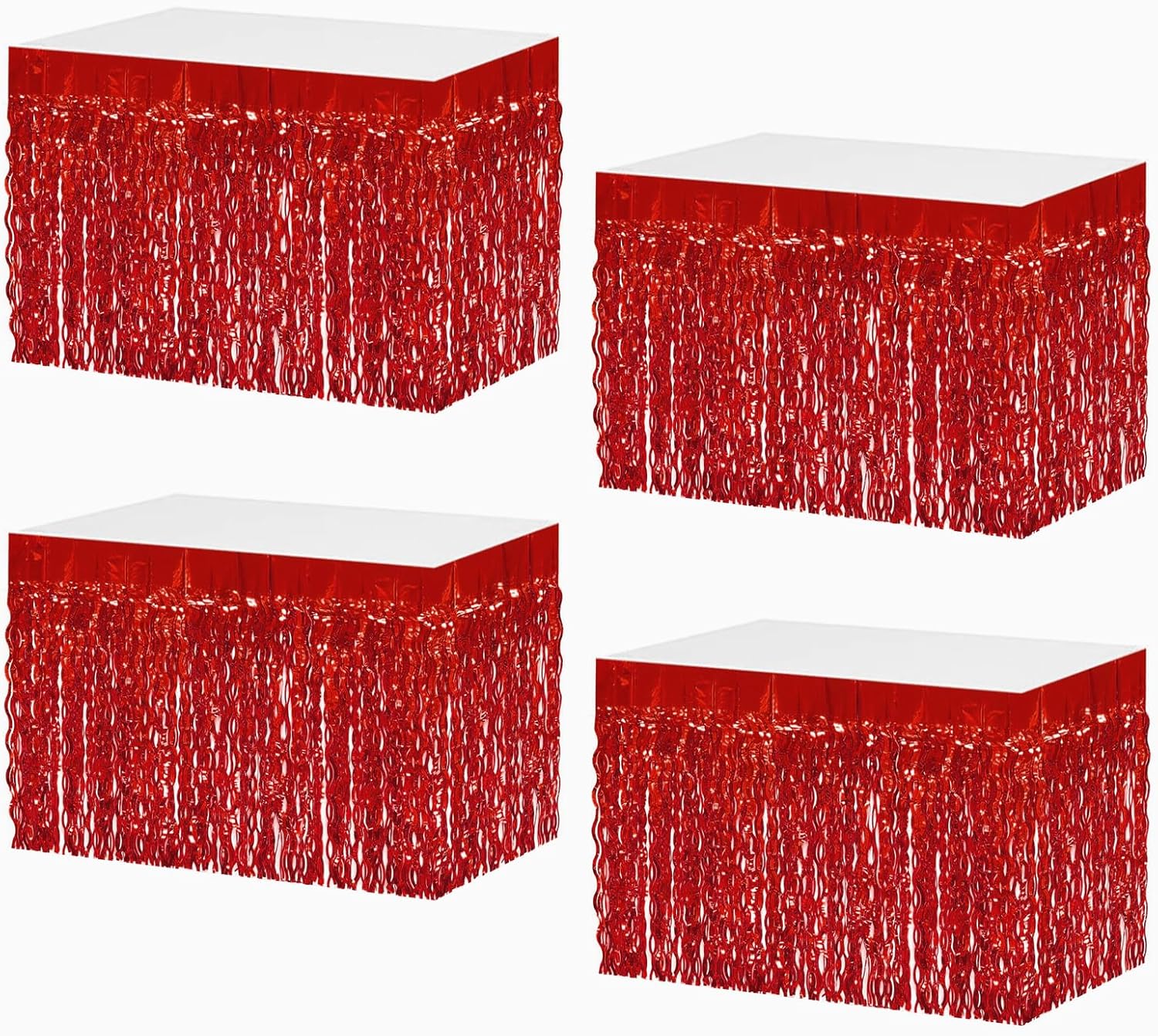 4P Wavy Metallic Tinsel Foil Fringe Table Skirts for Rectangle Tables Backdrop Garland Curtains for Parade Floats Wedding Birthday Parties Decoration Graduation 2025 Christmas (Red)